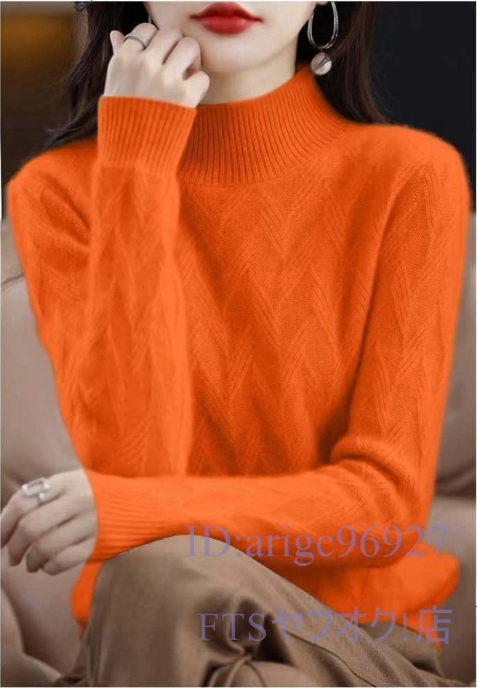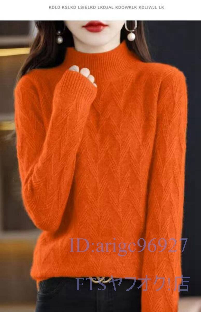A0553☆新品フリーサイズ オシャレ ミンクカシミヤ混 ニットセーター ストレッチ 長袖 レディース ニットトップス * オレンジ