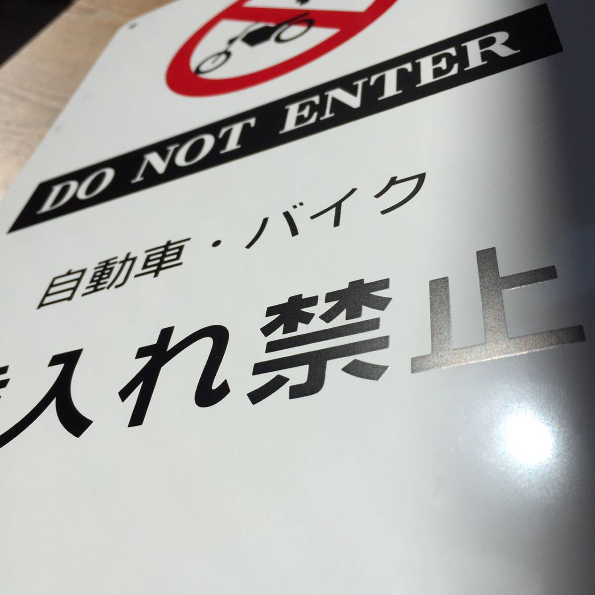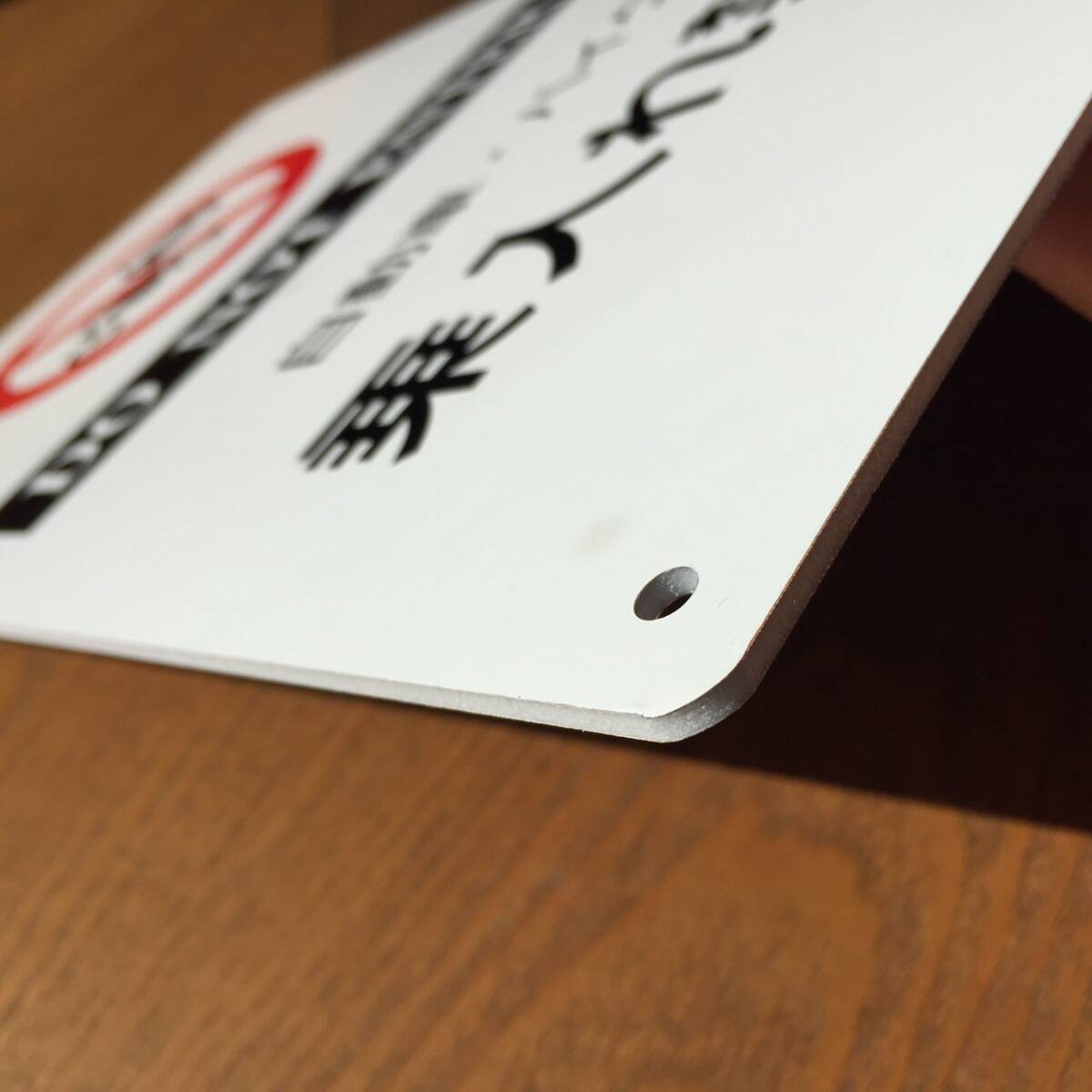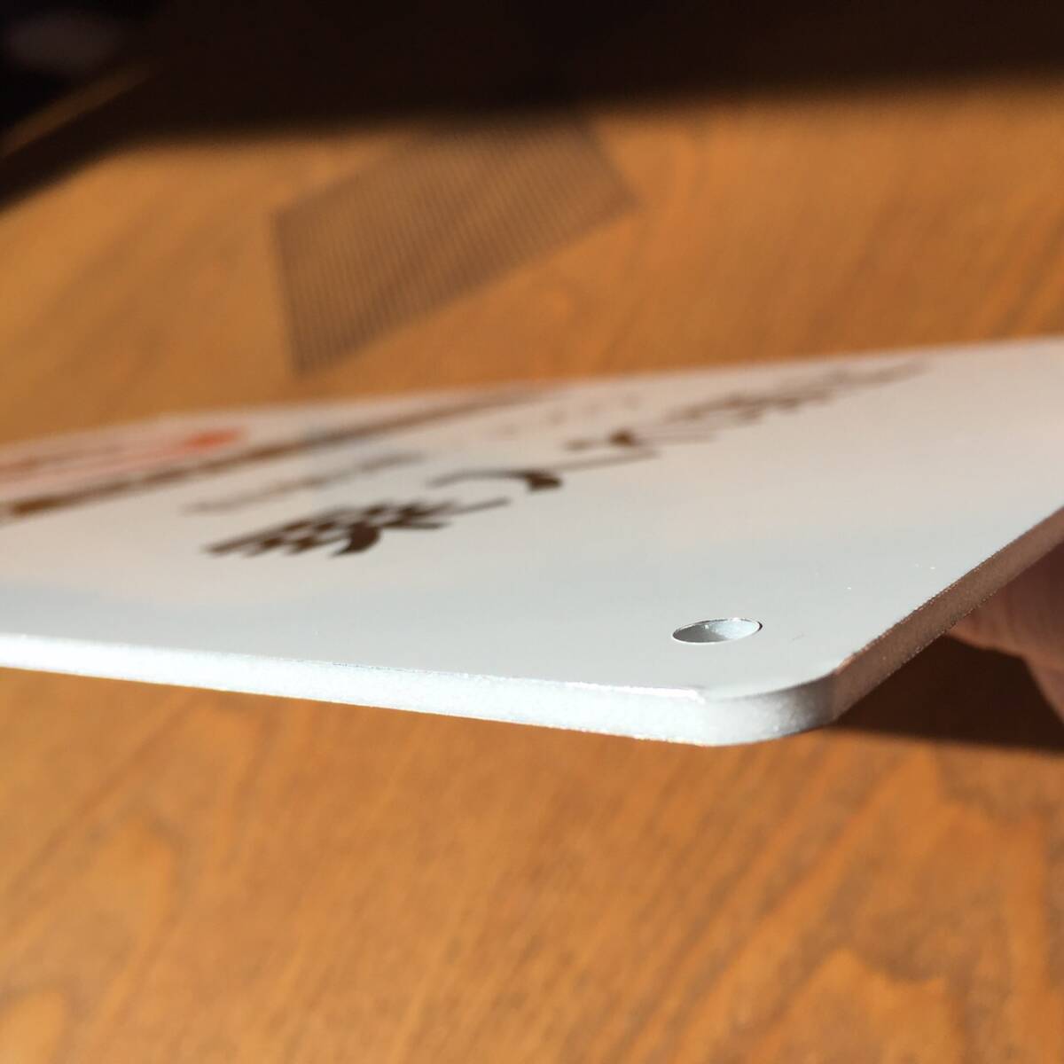 加工:シルクスクリーン印刷(屋外長期耐候インキ使用)、4角に5mm穴あけ済みで取付簡単、角がとがっていない安全な角丸仕上げ。