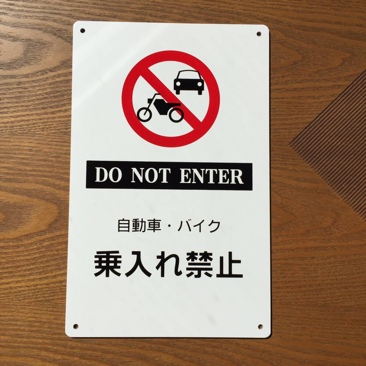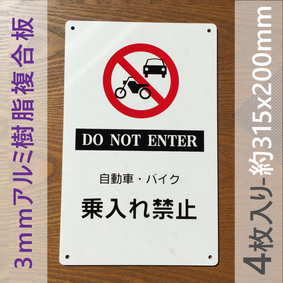 4枚入りアルミ樹脂板 自動車 バイク 乗入れ禁止 警告標識 注意喚起 パネル看板 屋外対応 案内板 防水注意看板プレート看板 出入口に 日本製