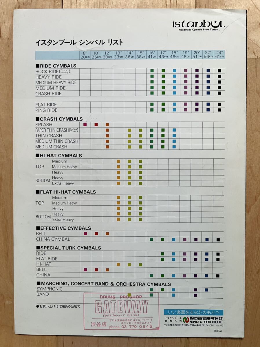 Istanbul シンバルカタログ 1987年? 二つ折り1枚もの G