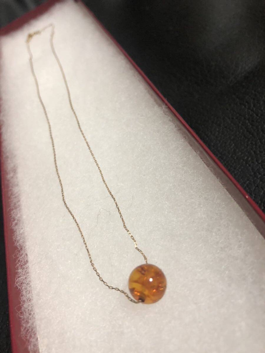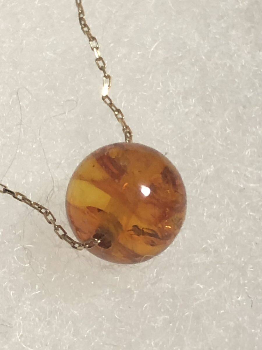 K10 金ネックレス 刻印 アンバー 天然8mmアクセサリー Gold 38cm 極細チェーン