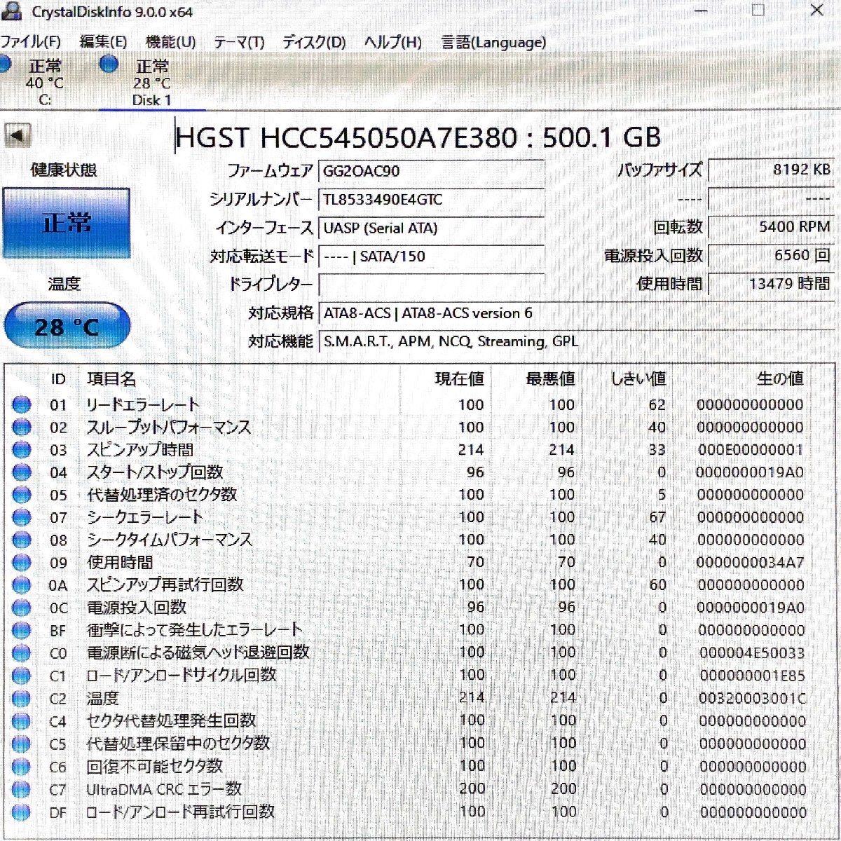 ★ハードディスクはCrystalDiskInfoにて正常に動作することを確認しています。