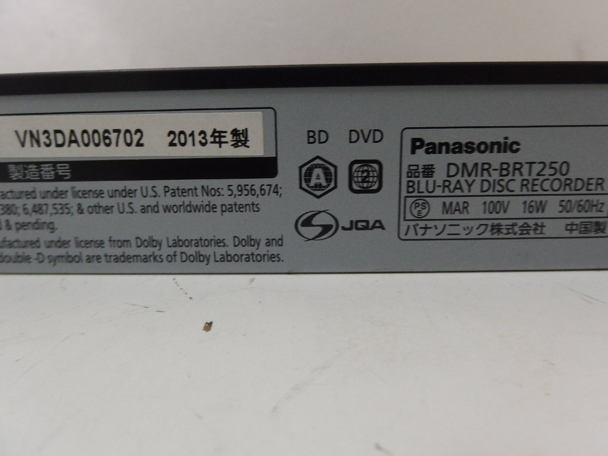 10▲/Zク4460 保証有 ☆Panasonic パナソニック ブルーレイディスクレコーダー DMR-BRT250 2013年製 中古