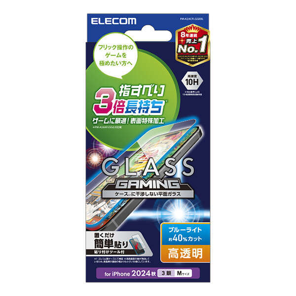 | 製品 | iPhone16 Pro用画面保護ガラスフィルム ゲーミング・ブルーライトカットタイプ |