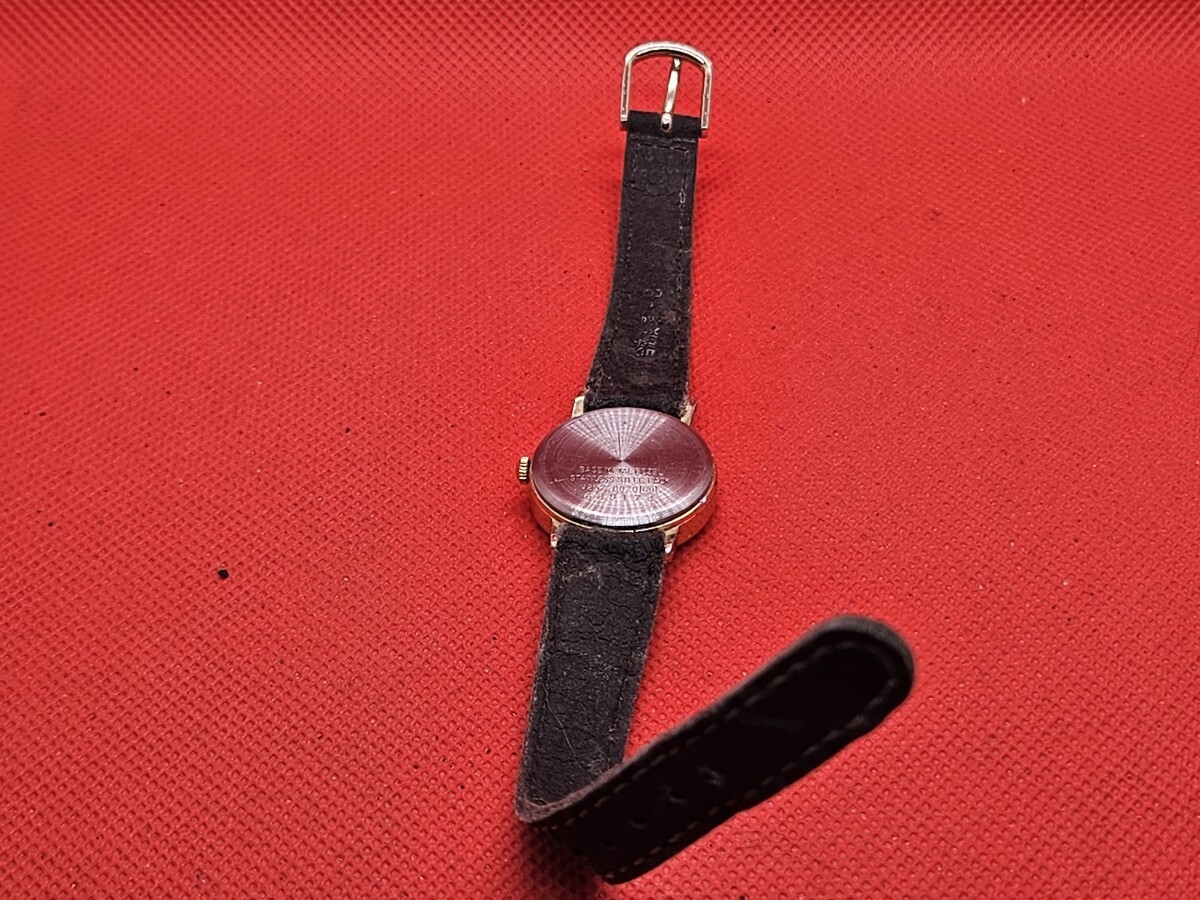 ご覧いただきありがとうございます。 この商品は電池交換済み稼働品です。 ※オークション終了に至らなくても入札 の無いものは更新する場合があります。 ご容赦ください。 商品詳細 本体や裏蓋には細かい傷ありますが、 文字盤は綺麗で、インデックスも綺麗です。 風防に傷あります。 必ず写真でご確認ください。 針の調整出来ます。 動作品でも精度等は計測していません。 電池は新品交換済みです。 ご入札について 上記の事を考慮した上でご検討下さい。 基本現状渡しになります。 未使用品、使用品共に経年劣化による黄ばみ、スレ、 傷などがある場合があります。画像を必ず確認して 頂きご入札はご自身の判断でご入札下さい。 神経質な方はご入札をお控え下さい。 ノークレーム、ノーリターンでお願いいたします。 写真に写っているものがすべてになります。 注意事項 ※他サイトにも掲載中のためオークションの早期取り消し等 する場合があります。ご容赦ください。 ※ 落札後のご質問はご遠慮ください。トラブルの元となる為、 ご質問は必ずご入札前にお願い致します。 ※受取連絡後評価をしていただければ評価を返します。評価 が無いものは評価し合わないものと判断させて頂きますので ご容赦ください。 ※落札後はノークレーム・ノーリターンにてお願いいたします。 (返品等の対応は一切しておりません) ※落札後、未入金 一切返答無しの方や、商品受取後の受取連絡を 全くされない落札者様が大変増えております。 落札後であっても評価に上記の内容によるキャンセルや、 悪い評価が付いてる方は入札を削除することもございますので、 予めご了承下さいませ。 ※土曜日・日曜日・祝日はメール対応が出来ませんので 落札頂いた商品の対応は月曜日以降の対応になります ※領収書の発行は行っておりません。 かんたん決済利用明細をご利用下さい。