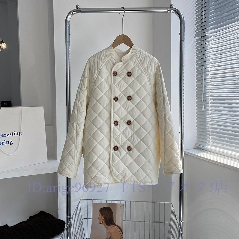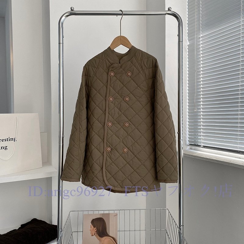 A6341☆新品秋冬 カジュアル ゆったり大きいサイズ ひし形チェック柄 無地 暖かい 綿コート ミニ丈コート M~XXL ベージュ