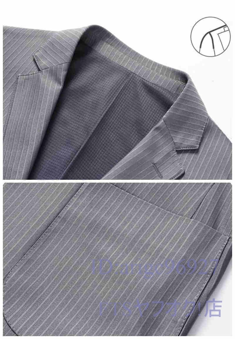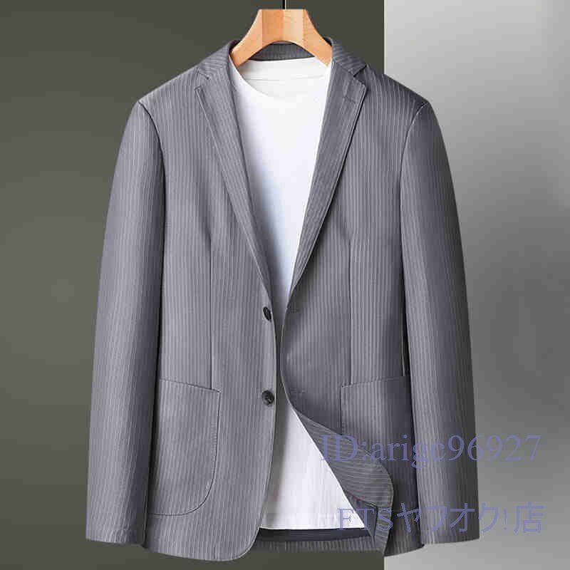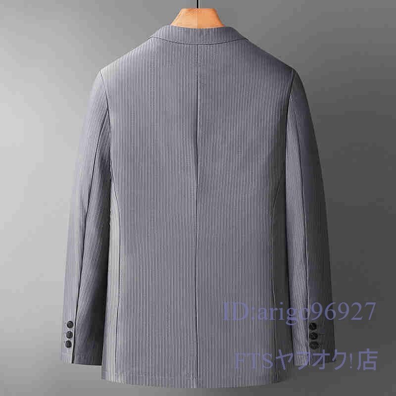 T954☆新品テーラードジャケット コート ストライプ 春秋服 メンズ ビジネススーツ カジュアル/ブレザー/ブルゾン【82332】グレー M
