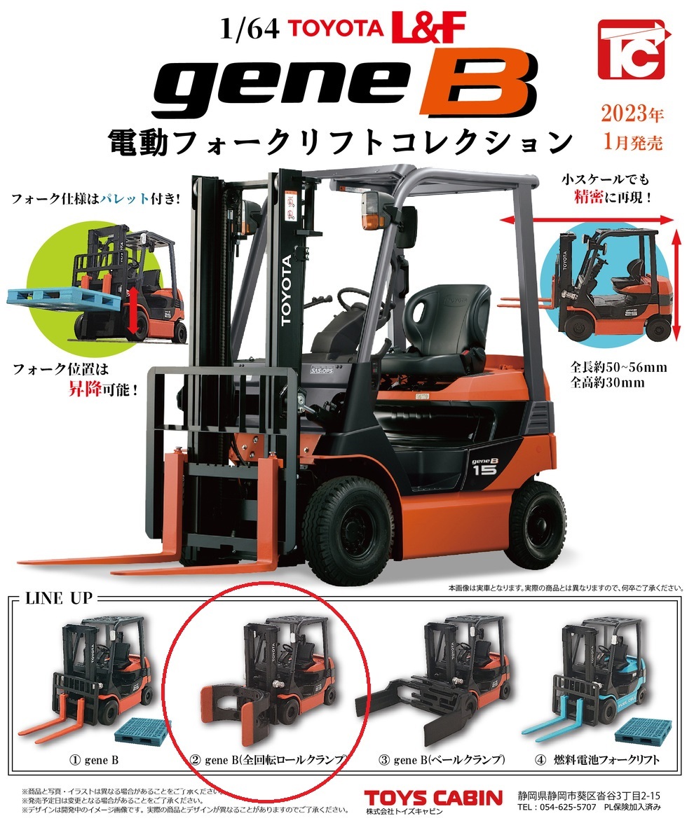 | <新品> トイズキャビン TOYOTA L&F gene B 電動フォークリフトコレクション ②gene B(全回転ロールクランプ) 1/64サイズ ※カプセル無し | ||||||||||||||||||||