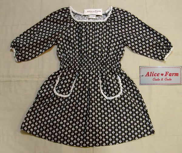 ■タグ付新品:110cm モノトーンワンピース 黒地に白い花柄    DmP51
