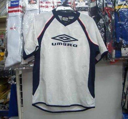 アンブロ UBS7629J半袖JRプラクティスシャツWNV 白×紺 ホワイト×ネイビー160cm ジュニア キッズ 子供 umbro 新品 レトロ /