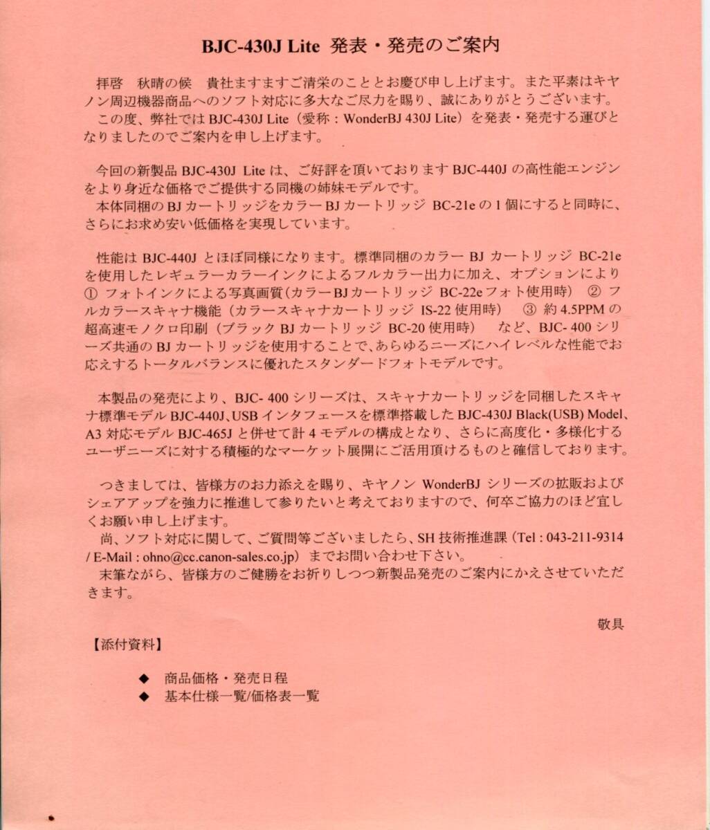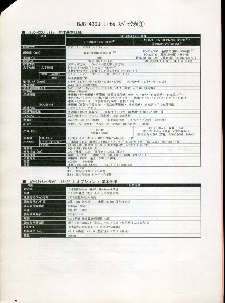 1998年・秋【CANON】Wonder BJ 430J Liteのカタログセット