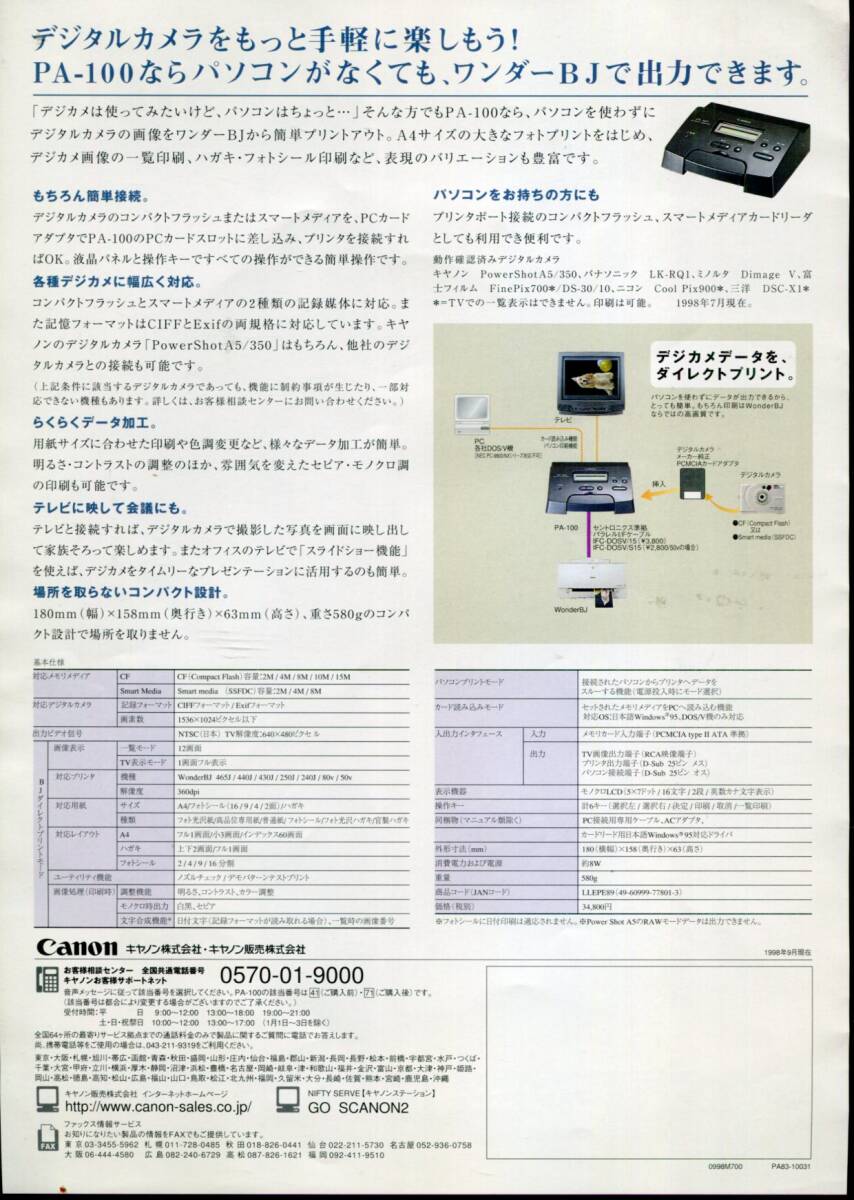 □BJフォトアダプタPA-100 カタログ('98年9月)x1