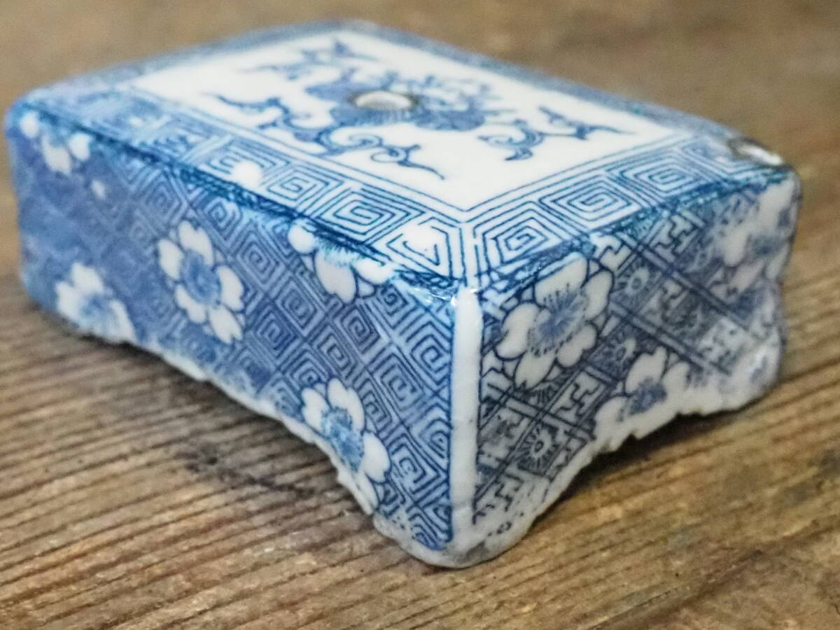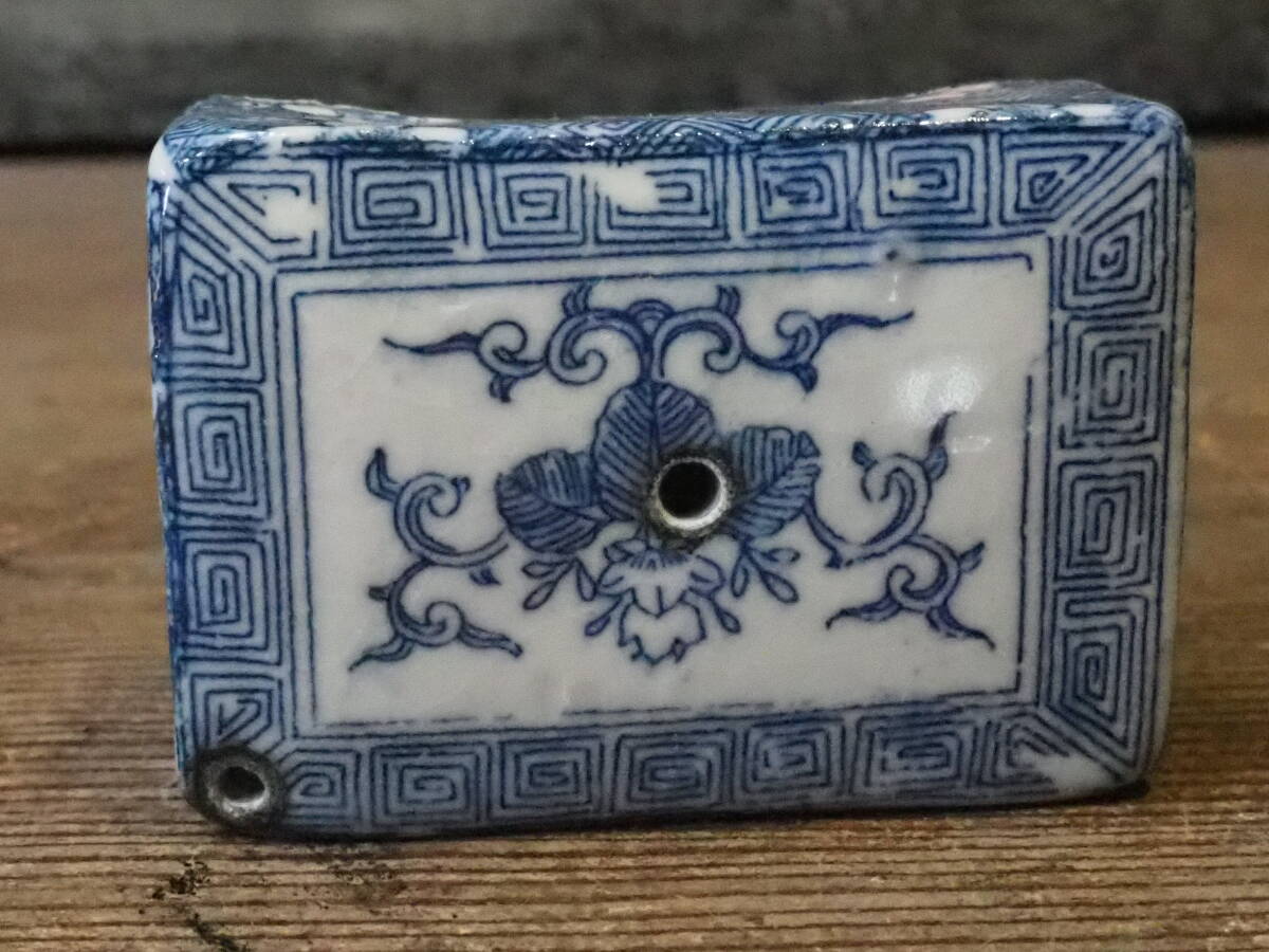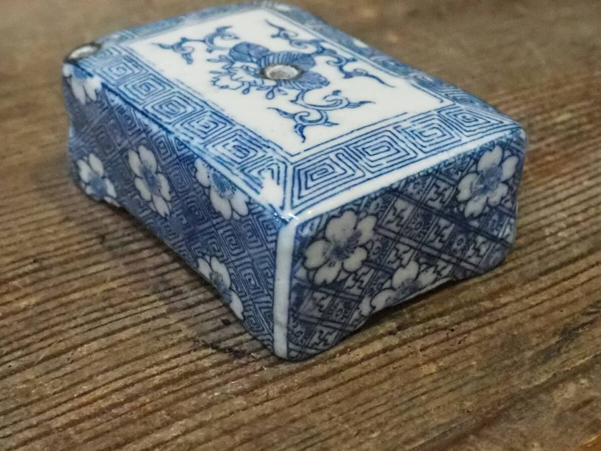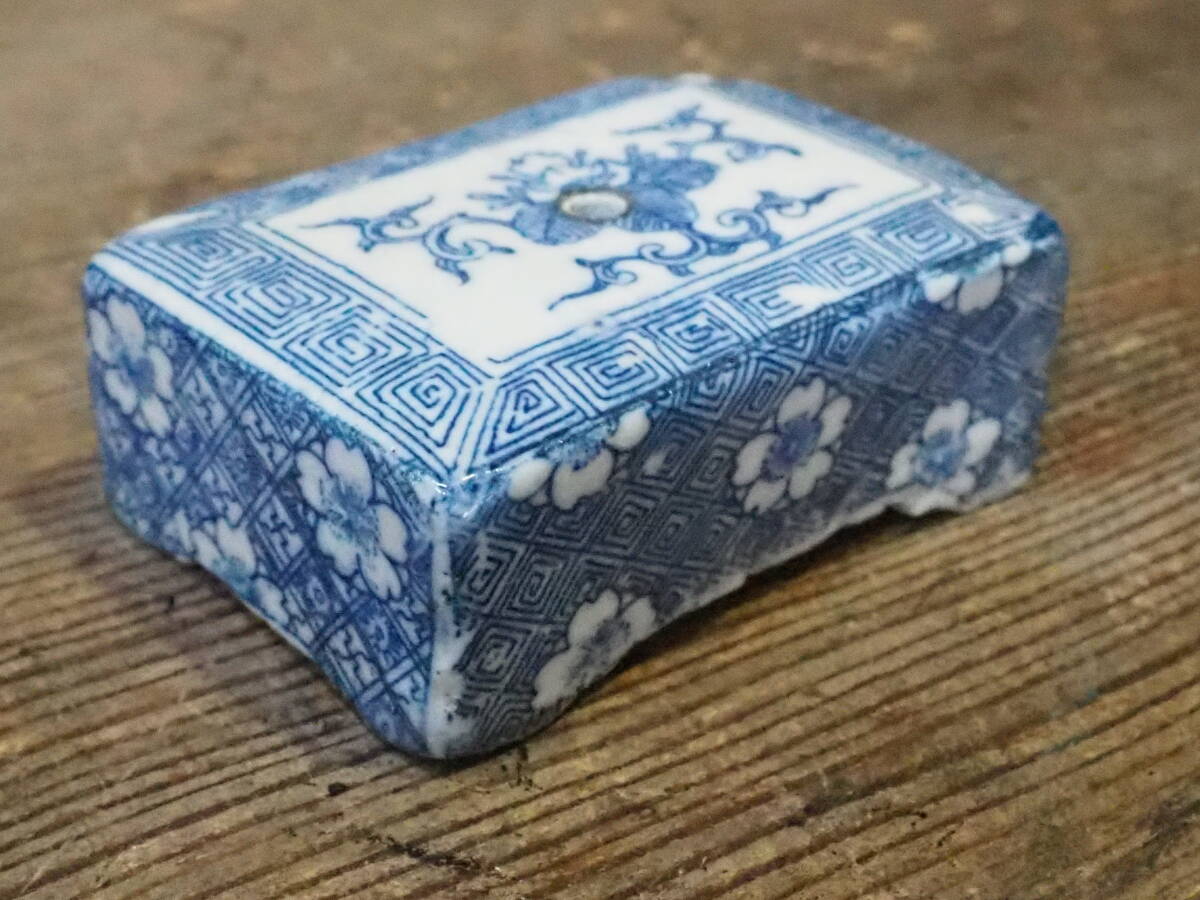 【染付の水滴】書道印判白磁陶器インテリア万年筆インダストリアル掛硯インク瓶古道具アンティーク文具ドライフラワー