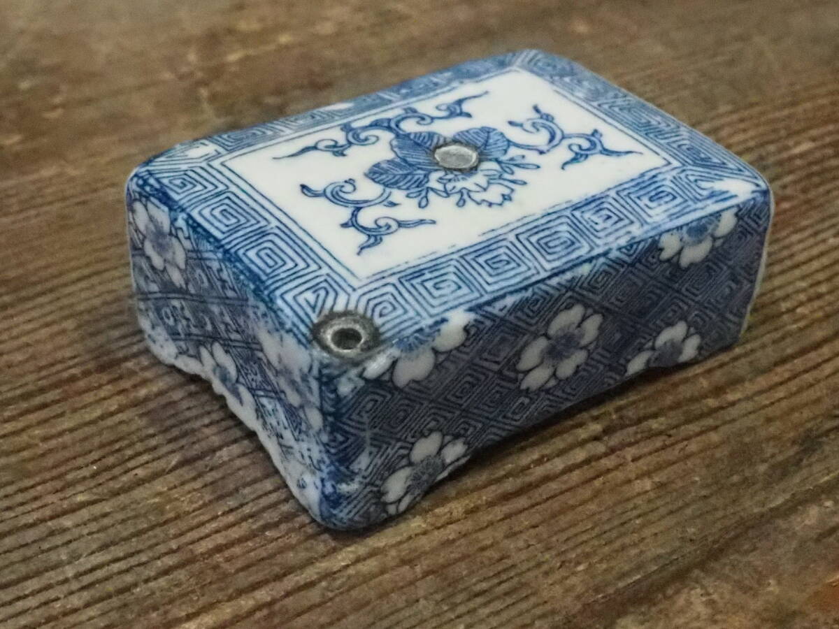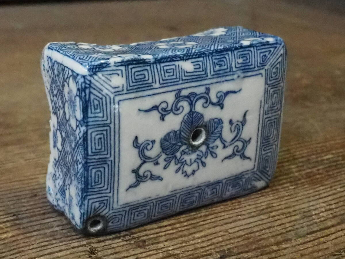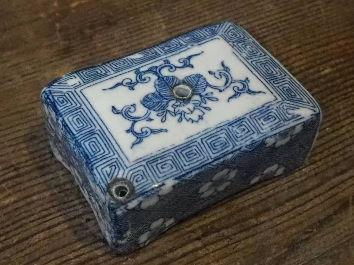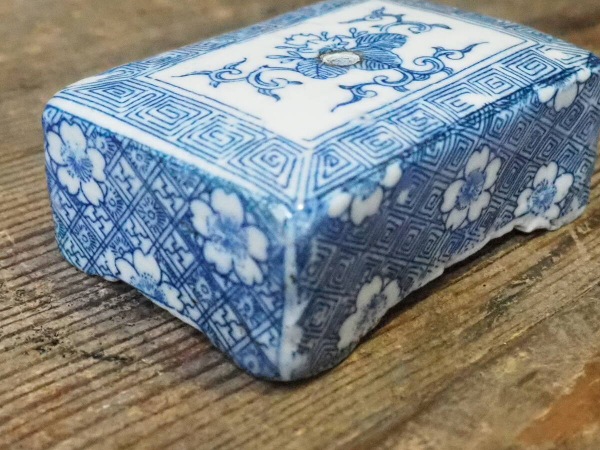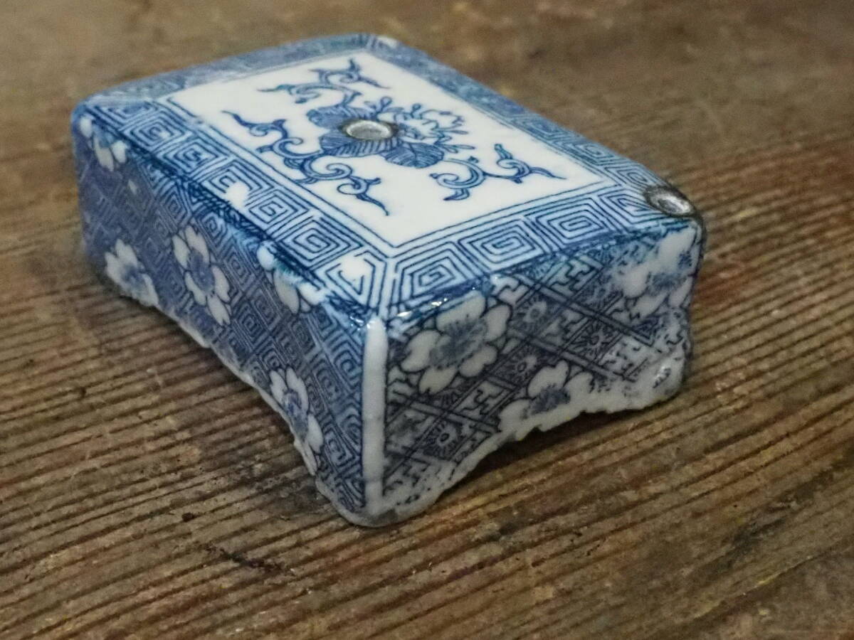【染付の水滴】書道印判白磁陶器インテリア万年筆インダストリアル掛硯インク瓶古道具アンティーク文具ドライフラワー