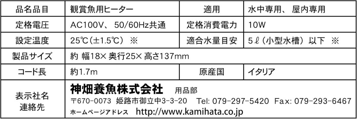 カミハタ NEWA サーモミニ プラス NWO 10w     本品は「統一基準適合ヒーター」です!