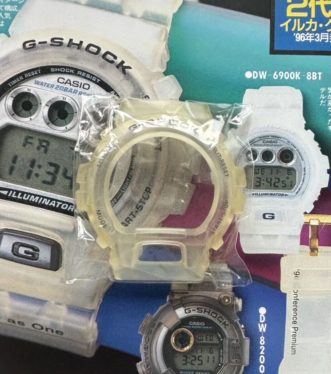 カシオ Gショック CASIO G-SHOCK DW-6900-8AT/8CT 第5回国際イルカ・クジラ会議記念モデルのホワイトスケルトン樹脂のベゼルです。