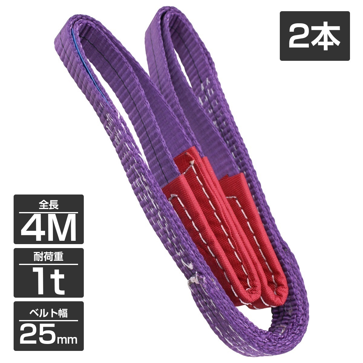 【2本 セット/耐荷1t/長さ4m】スリング ベルト 吊上げ ナイロン クレーン ロープ 荷吊り 玉掛け 牽引 運搬 1000kg 1トン 4m 幅25mm