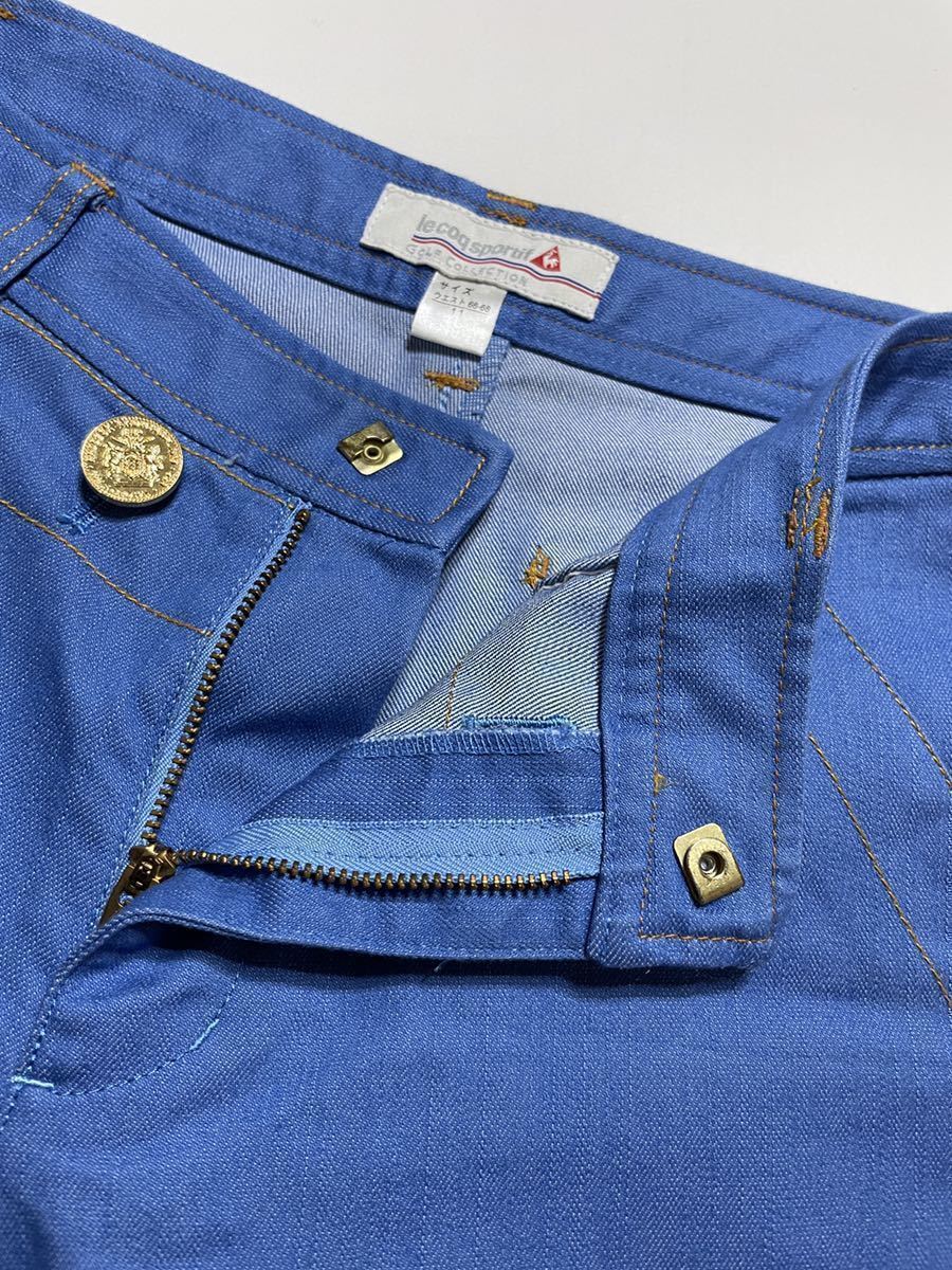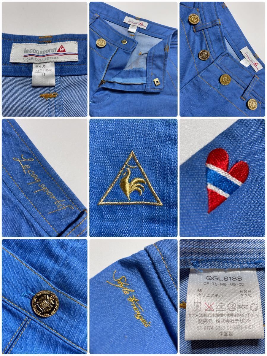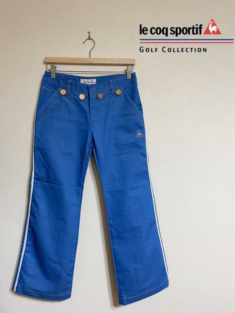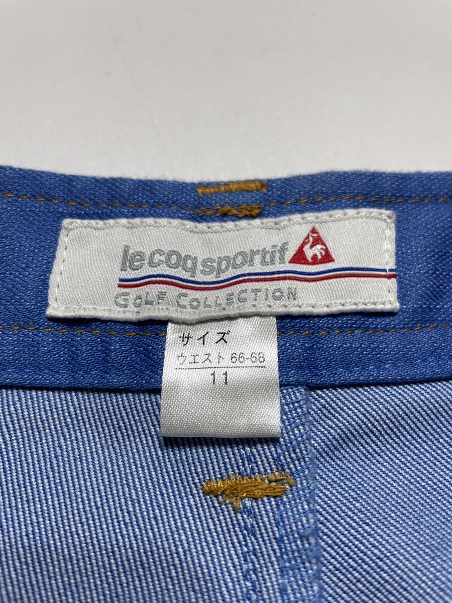 【美品】 le coq sportif golf ルコック ゴルフ ウェア ボトムス パンツ ブルー サイズ11号 ウエスト66-68 デサント QGL8188 青