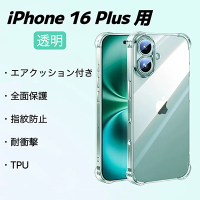 iPhone 16 Plus 用 スマホケース ケース 一体型カメラレンズ部分保護 エアバッグ 透明 クリア 保護カバー 指紋防止 耐衝撃
