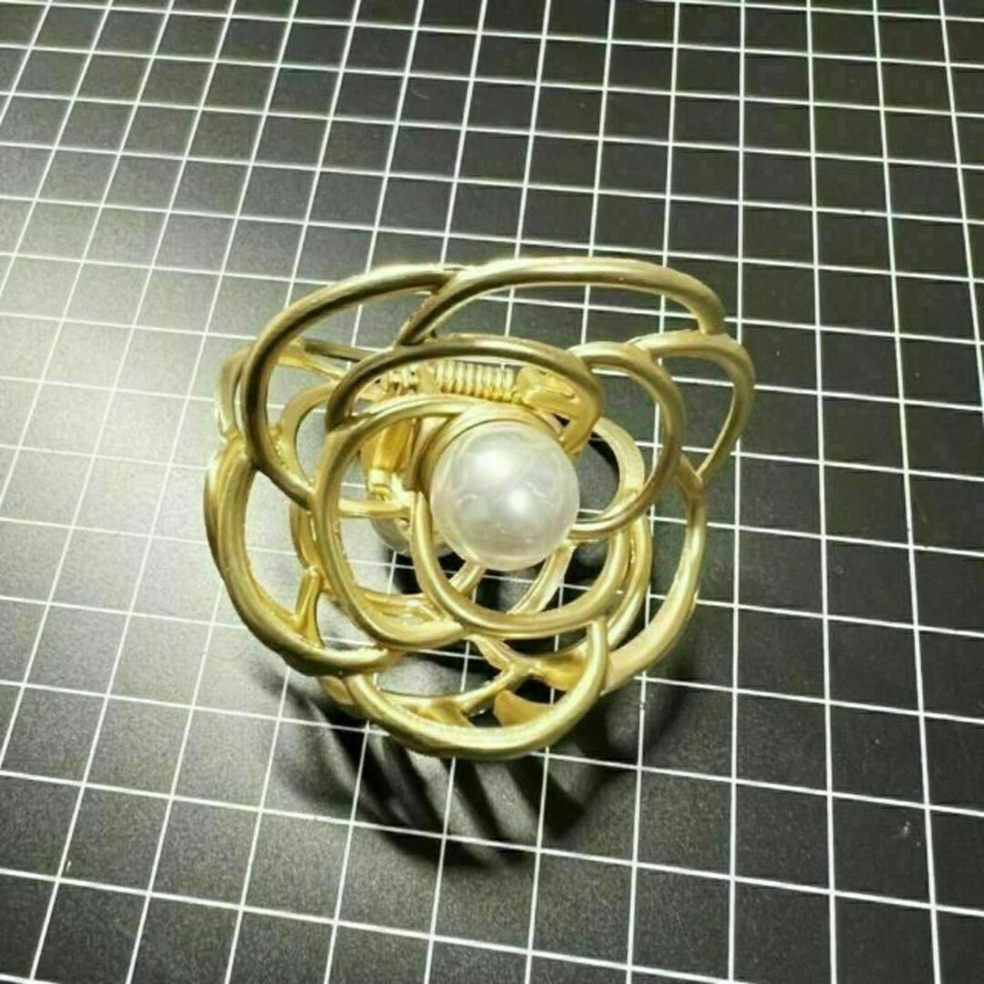 E062 バンズっクリップ ゴールド フラワー お花 ヘアクリップ パール ハーフアップ まとめ髪 バレッタ ヘアアクセサリー