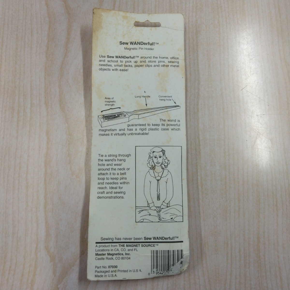 かなり前にどこかで購入したものです。首から下げて裁縫時にまち針などとくっつける便利道具です。