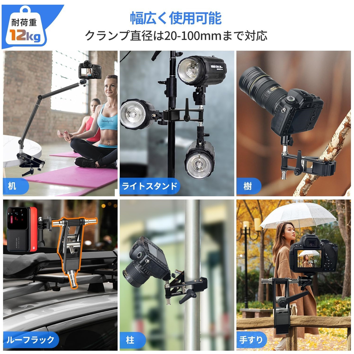 スーパークランプの耐荷重は12KGです。