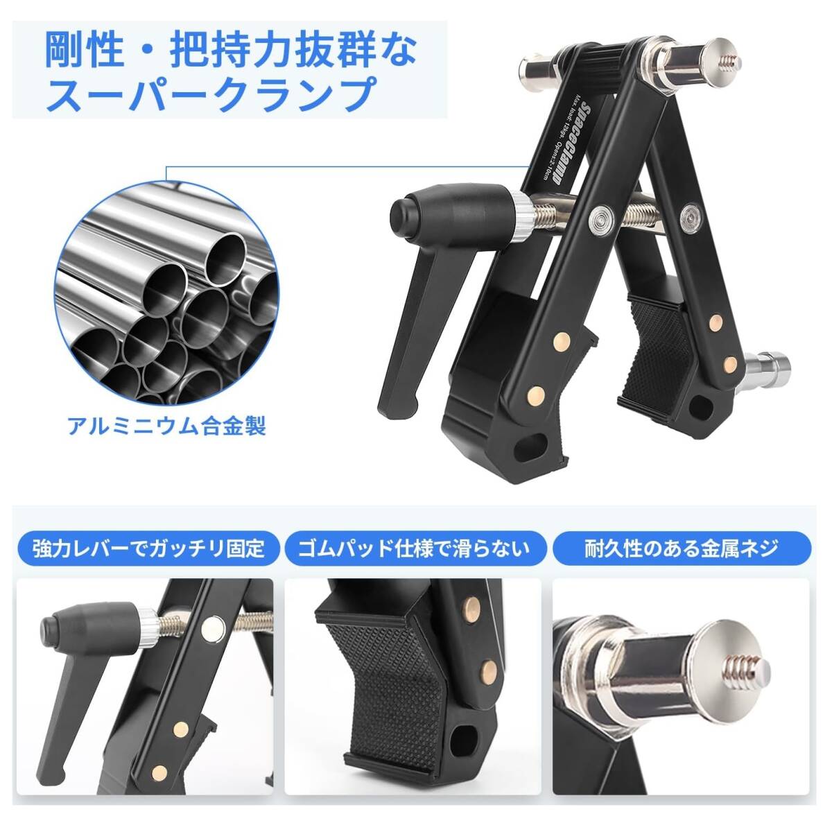 スーパークランプは強力なアルミニウム合金と金属材料を採用し、摩耗や損傷に対してより耐性があります。