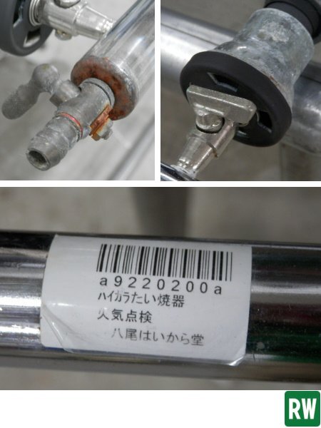 | 動作確認 | 済 都市ガス設備がない為LPガスにて点火確認いたしました。 実際に、たい焼きは焼いておりません。 | |||||||||