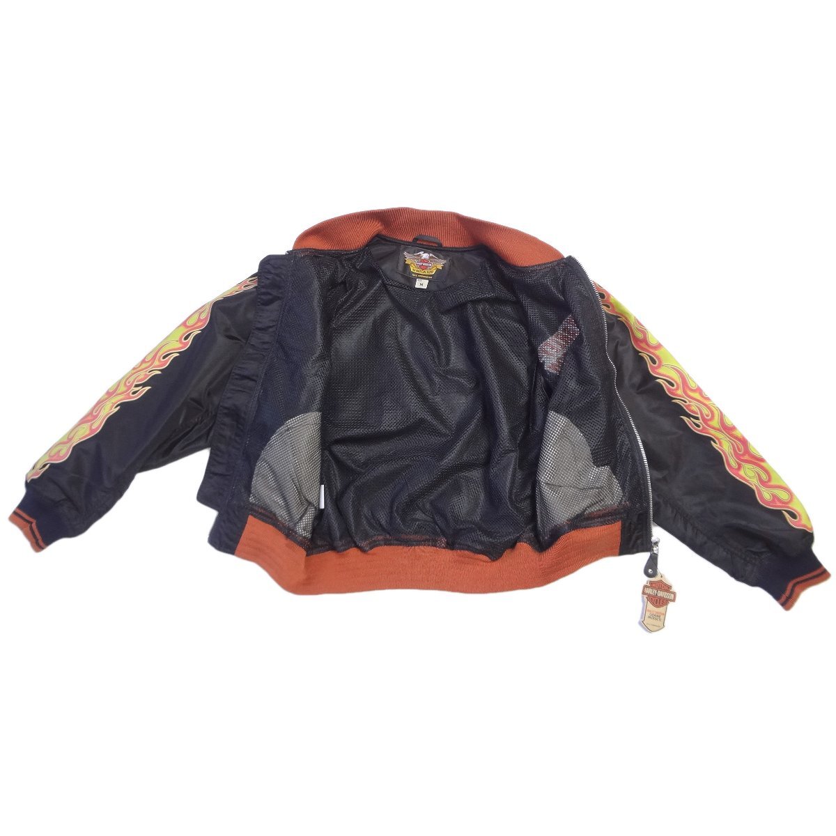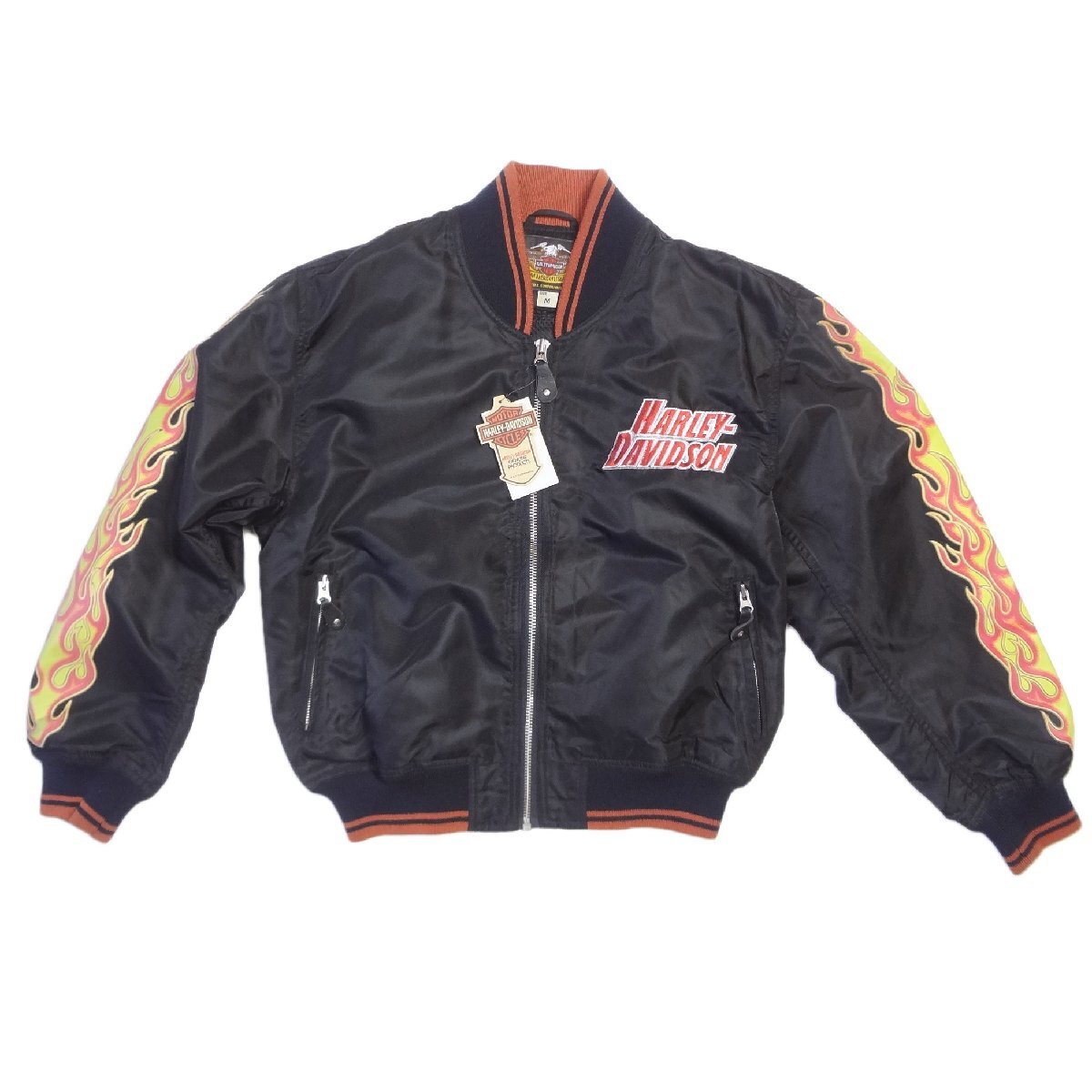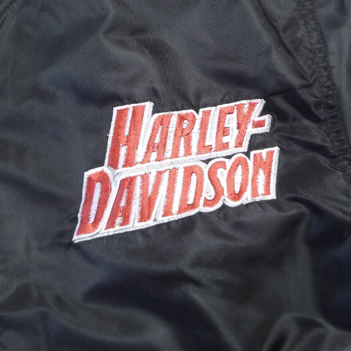 ハーレーダビッドソンのライダーススタジアムジャンパーです、胸ロゴ刺繍、ブラックバイカーブルゾン、表地:ナイロン100%、裏地:メッシュナイロン100%