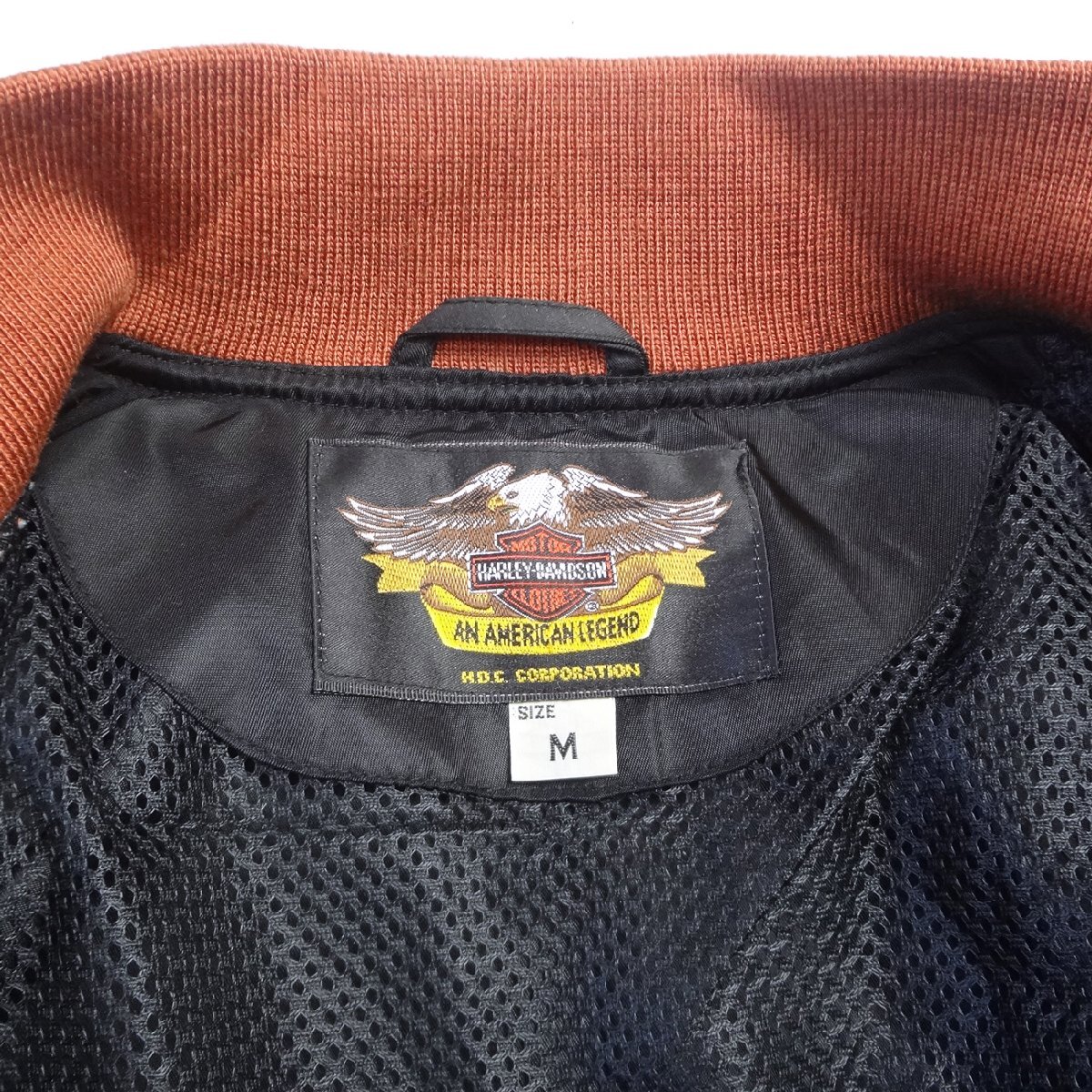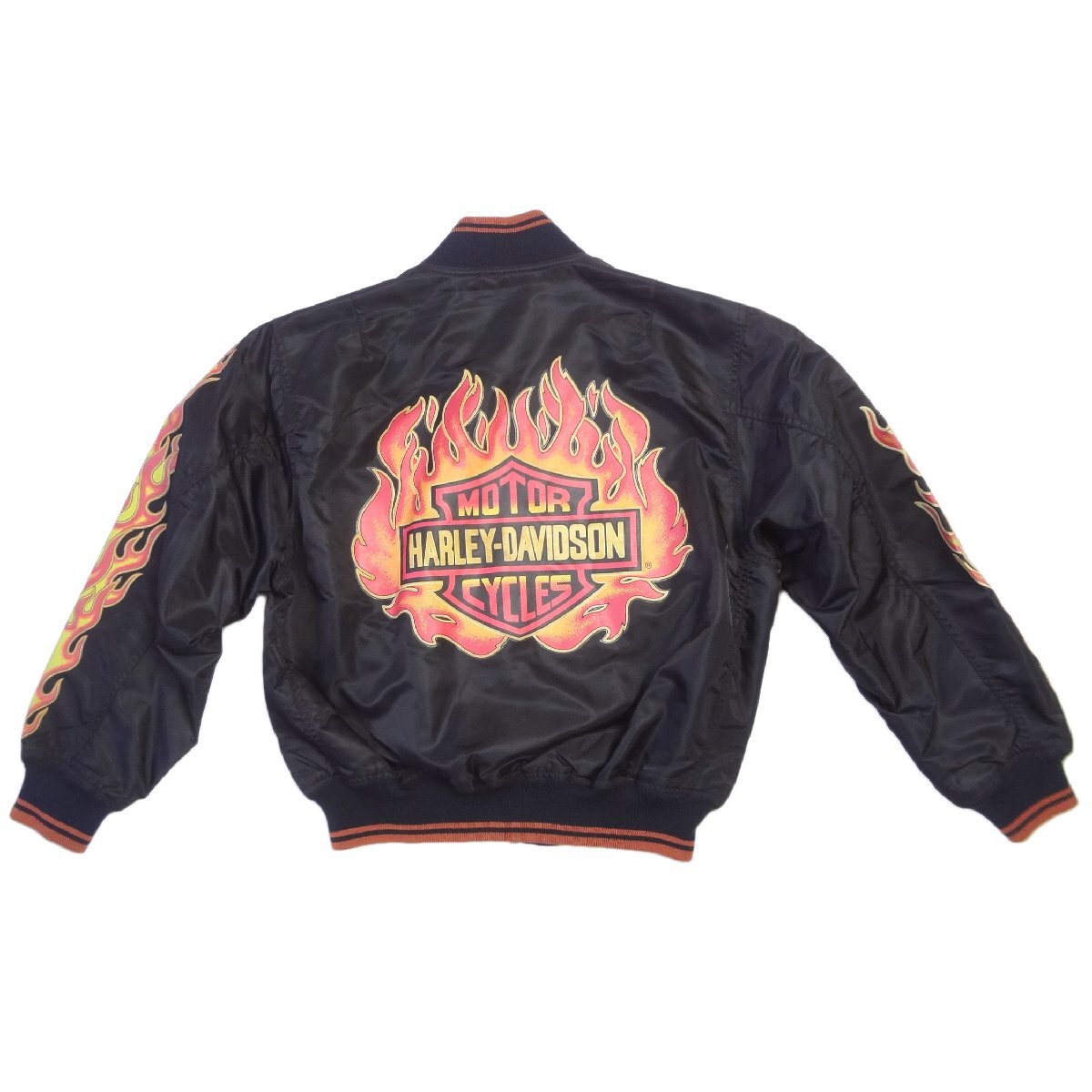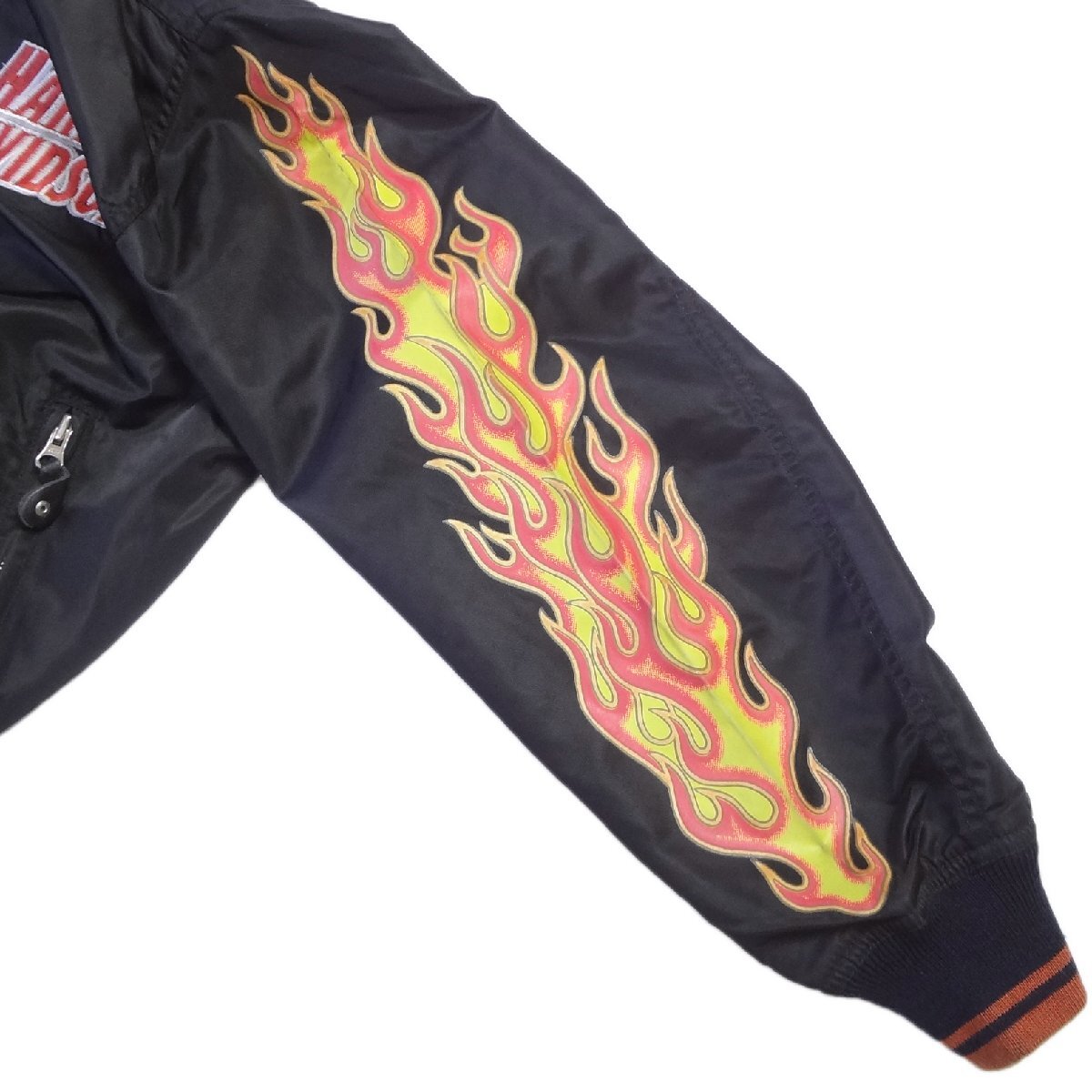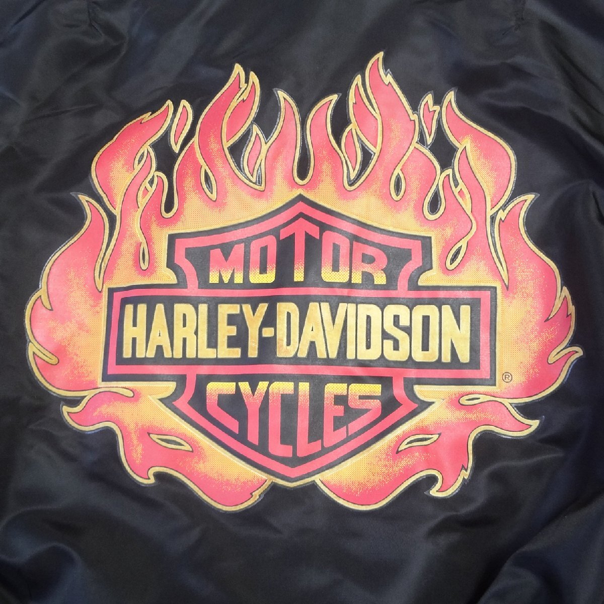 ハーレーダビッドソンのライダーススタジアムジャンパーです、胸ロゴ刺繍、ブラックバイカーブルゾン、表地:ナイロン100%、裏地:メッシュナイロン100%