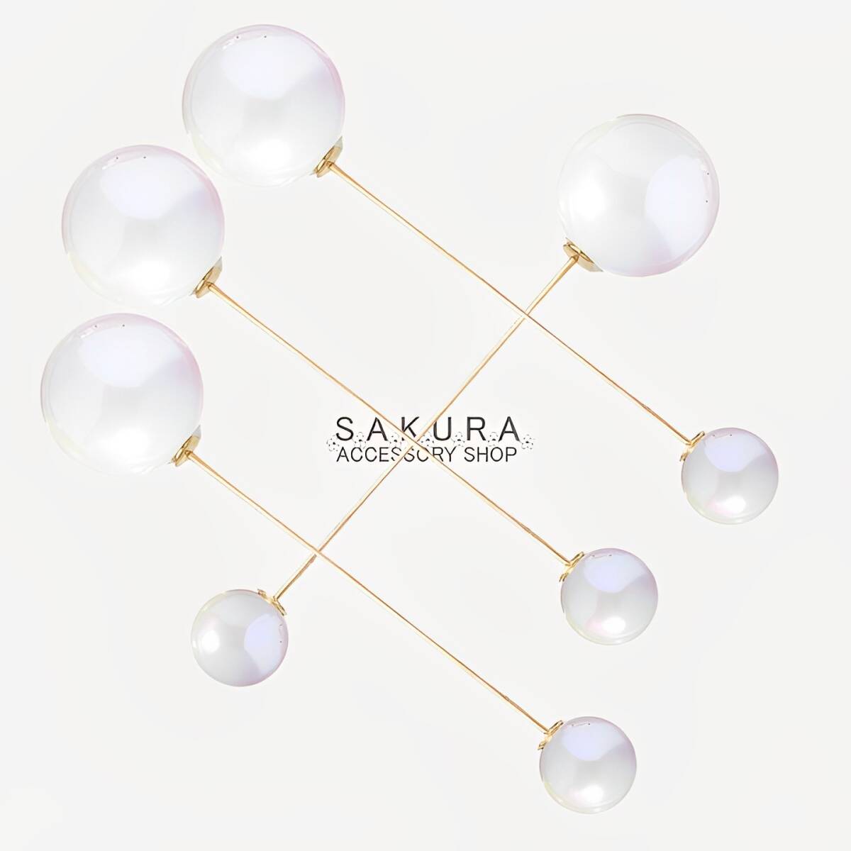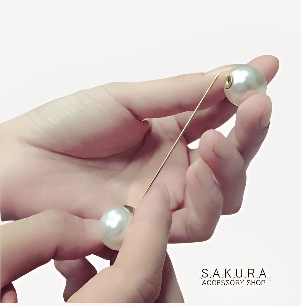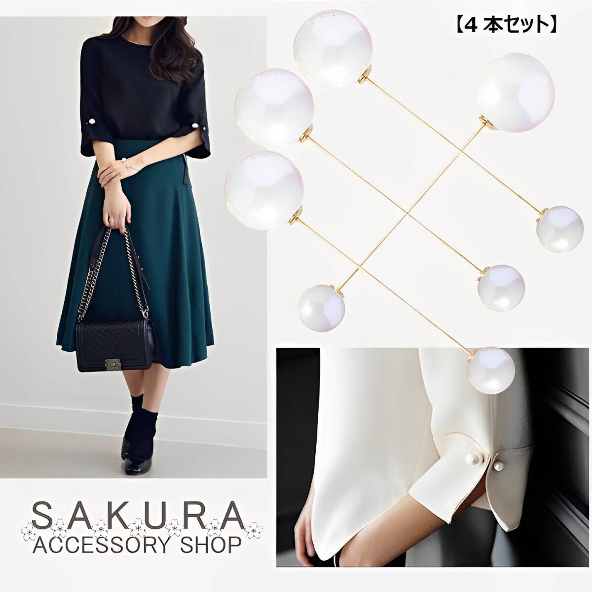 【4本セット】大小 パール ピンブローチ スカーフ止め/ゴールド