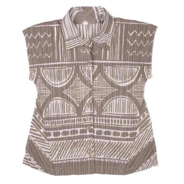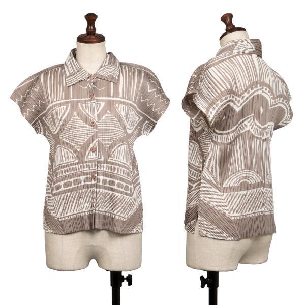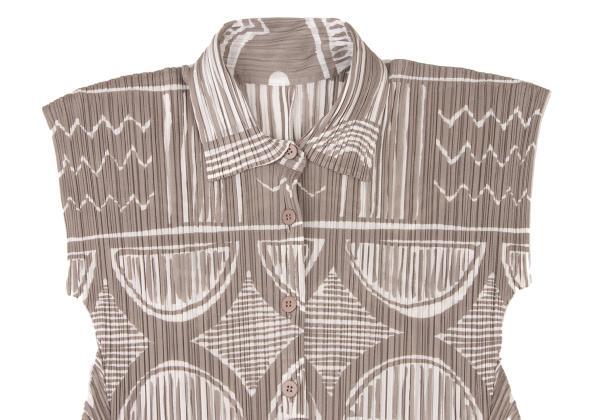 プリーツプリーズPLEATS PLEASE プリーツプリーズPLEATS PLEASE 総柄プリントプリーツ半袖シャツ 薄モカ白3 |