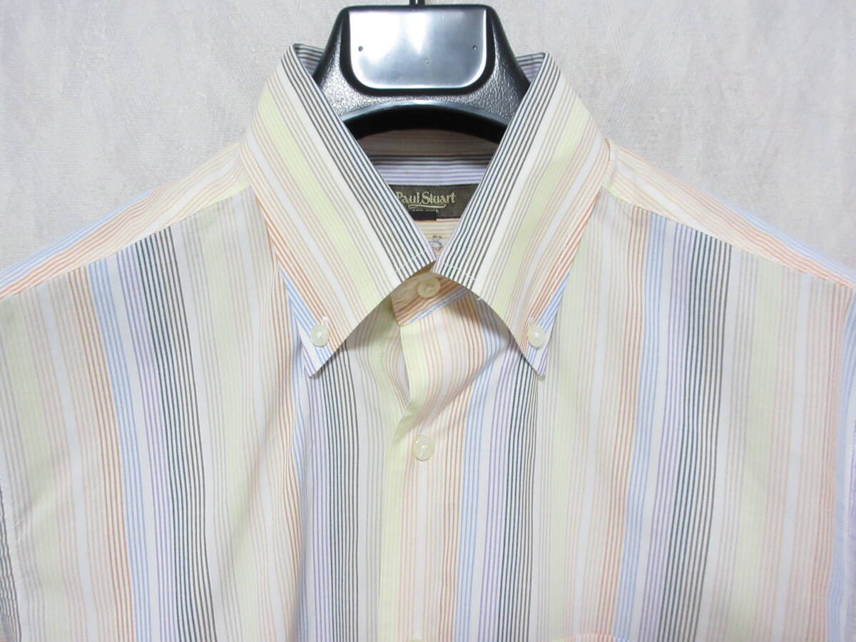 Paulstuart ポールスチュアート ストライプ 半袖 ボタンダウンシャツ メンズ L マルチカラー yg6375