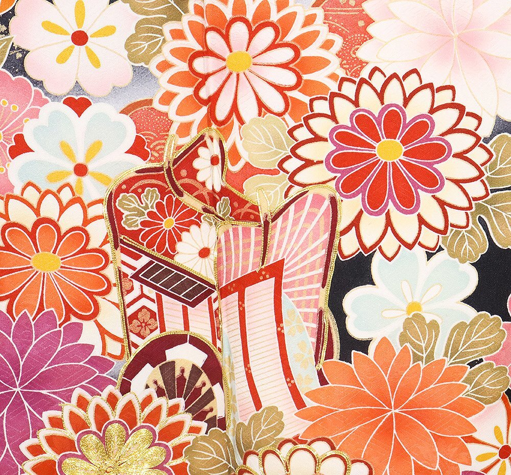 | 色・柄 | 十日町友禅 本加工品 振袖 袷 丹後縮緬 黒暈し地 御所車 松竹梅・桜・牡丹・菊 (写真では上手く色が出ない場合があります。ご了承下さい) 写真の枚数が多いので一度パソコンでご覧ください。 |