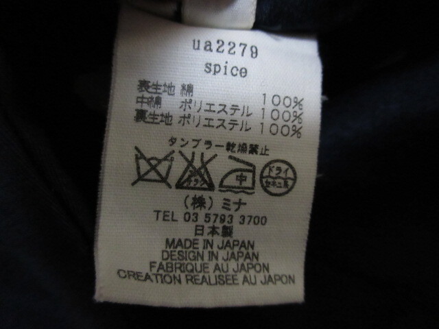 | 商品説明 | 商品状態はユーズド品ですが、目立つダメージなくきれいな状態です(神経質な方、新品をお求めの方は入札をお控え下さい)確実に正規品です。 サイズ36、 着丈:約57cm 肩幅:約47cm 袖丈:約47cm 身幅:約48cmです(素人採寸ですので誤差はご了承下さい) 素材はコットン100 中綿ポリエステル100 カラーはネイビー。裏地はchocho総柄です。 テキスタイルはspice です。 激安価格で出品いたしますので是非この機会にいかがでしょうか? |