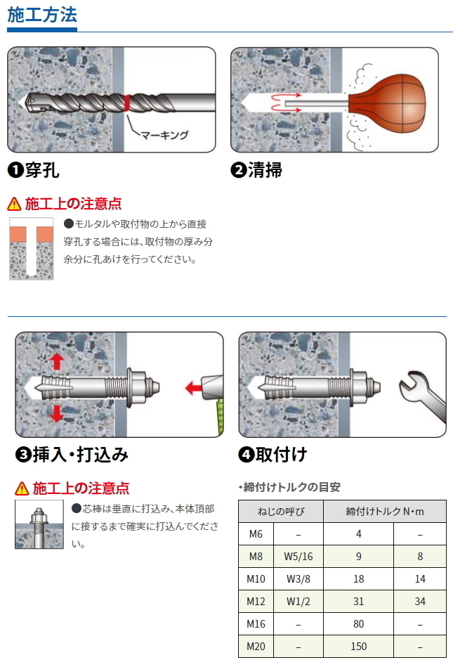 手摺取付け / フェンス支柱固定 / ブラケット固定 / 設備架台取付け / ラック固定等