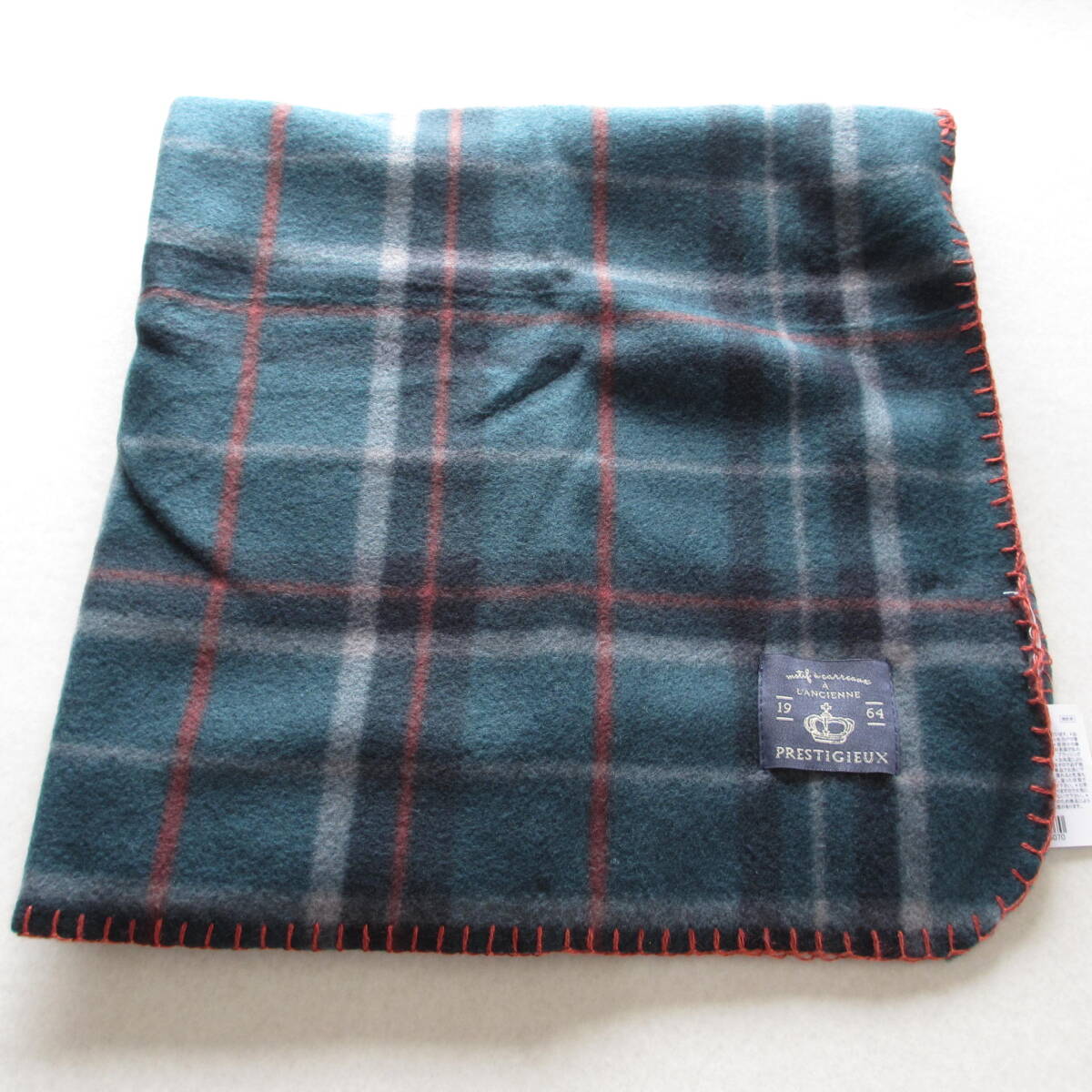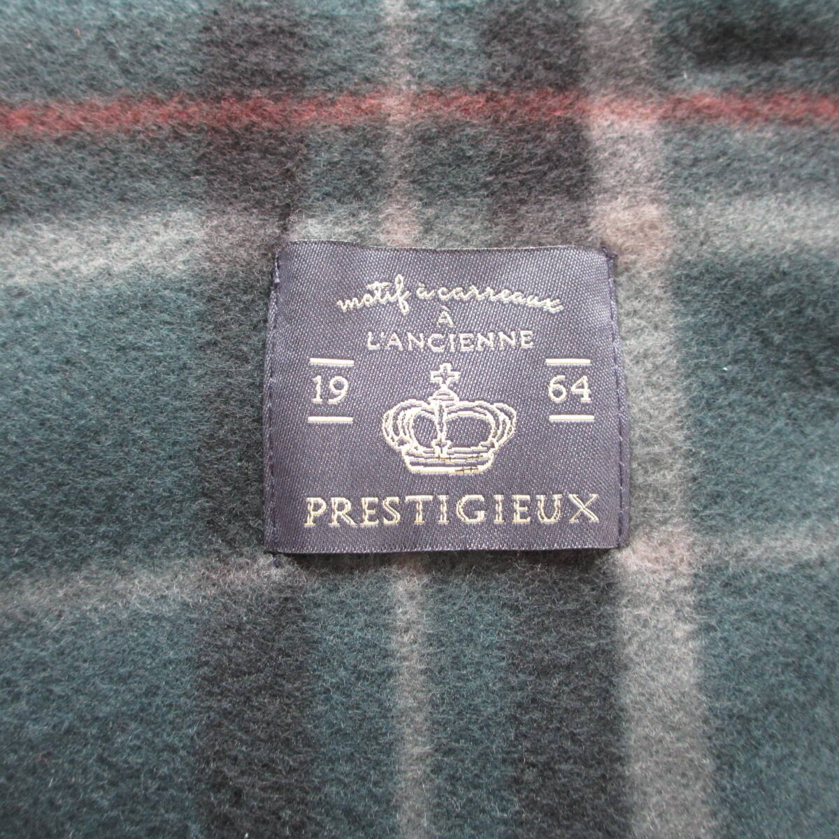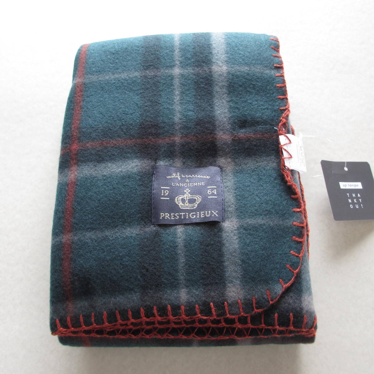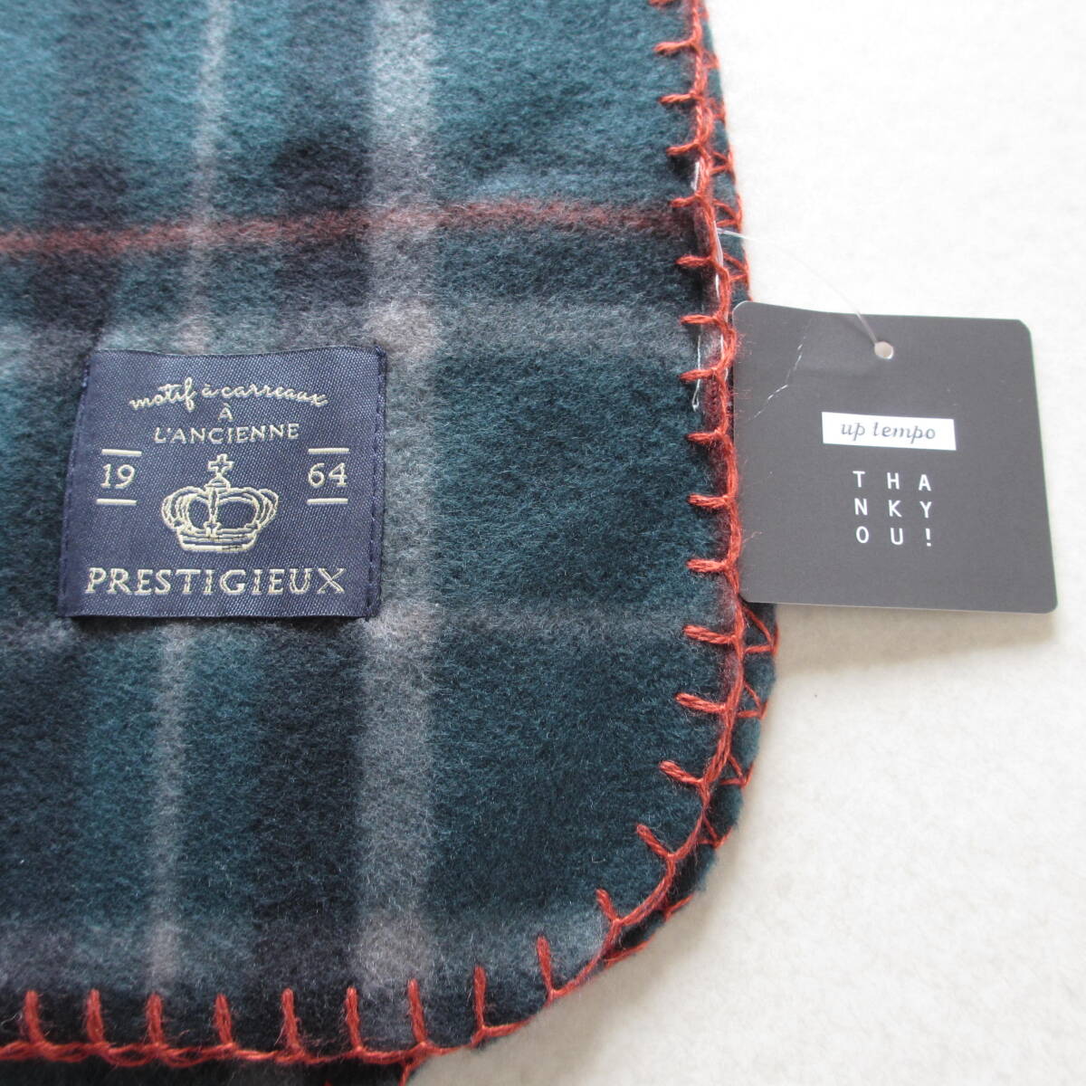 お色目はグリーン地色にオレンジ・グレー・ブラック地色の格子柄の膝掛けです。