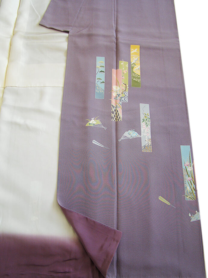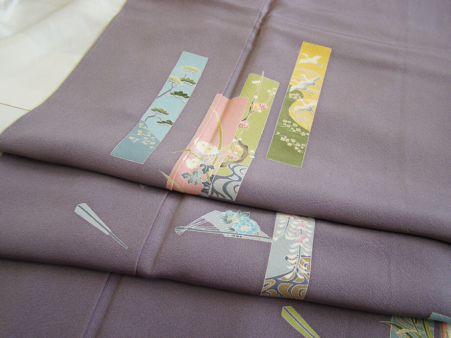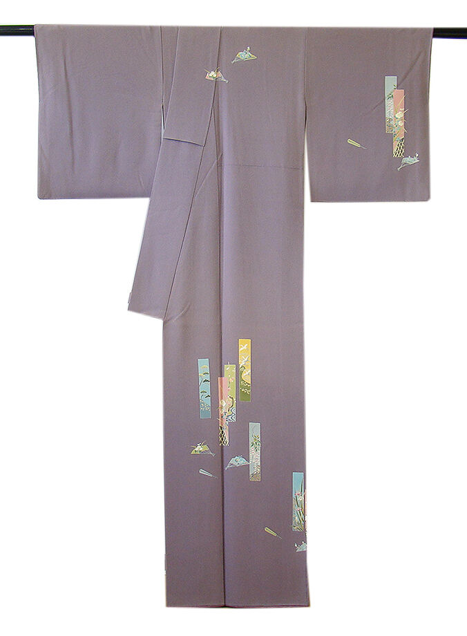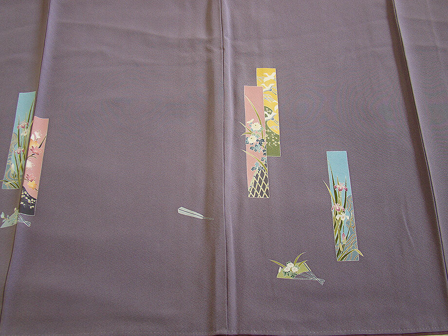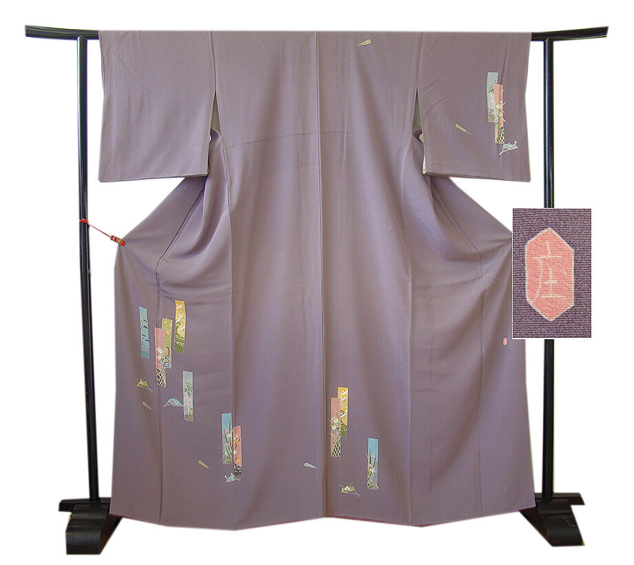 | 商品説明 | こちらのお品は「袷」ですので10月から5月までお召頂ければと思います。 しなやかで柔らかな手触り良いさらりとした滑らかな重めのちりめん地の生地、 渋い鳩羽鼠色地に短冊文に花草、鳥、扇子柄等の本加工染、 八掛は葡萄鼠色(正絹)、作家の落款入り、幅広い年代の方にお召頂けます。 |