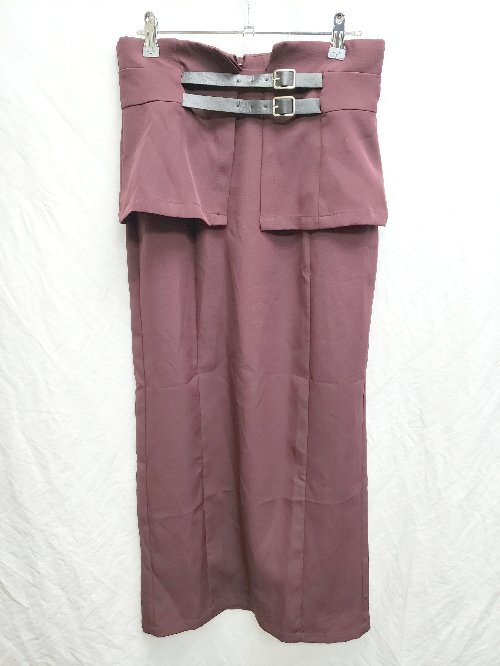 ◇ ⊇ ◎ ●未使用● JUNOAH ウエストデザイン ロング丈 タイト スカート サイズXL ワインレッド系 レディース P