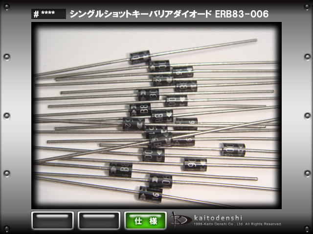 | Type:シングルショットキーバリアダイオード 型番:ERB83-006 パッケージ:アキシャル メーカー:FUJI 製造国:日本(Japan) | |