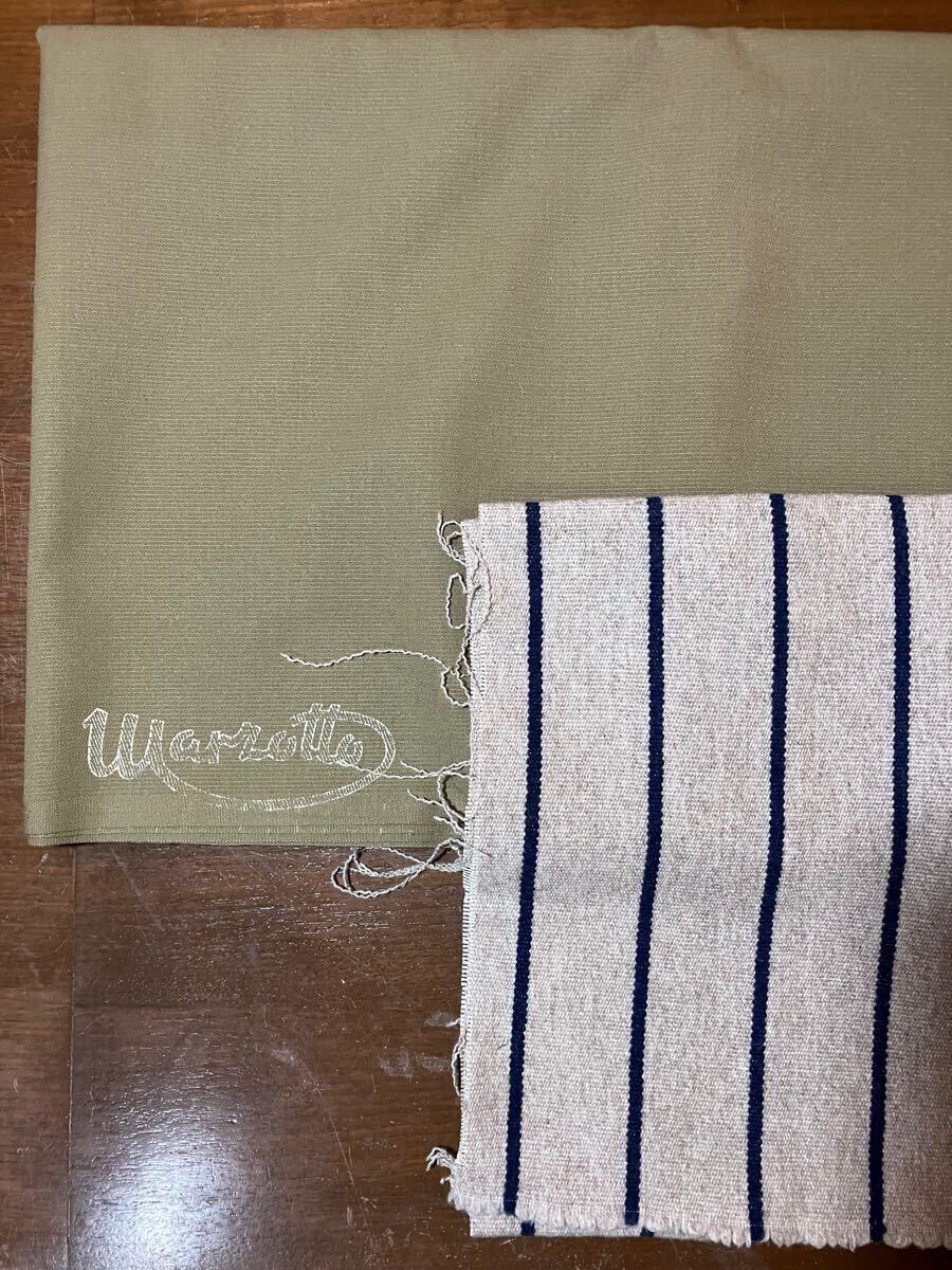 ①Warzotto?とかかれた、緑っぽいカーキのような色です。(画像3がちかいと思います。)スーツのような生地 147.5cm×2m49cm