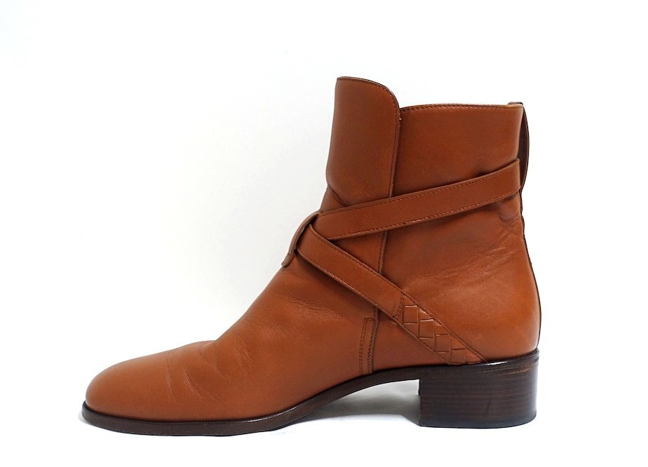 美品 BOTTEGA VENETA ボッテガヴェネタ イントレチャート レザー ジョッパー ブーツ シューズ カーフ キャメル系 メンズ 40 26-26.5cm
