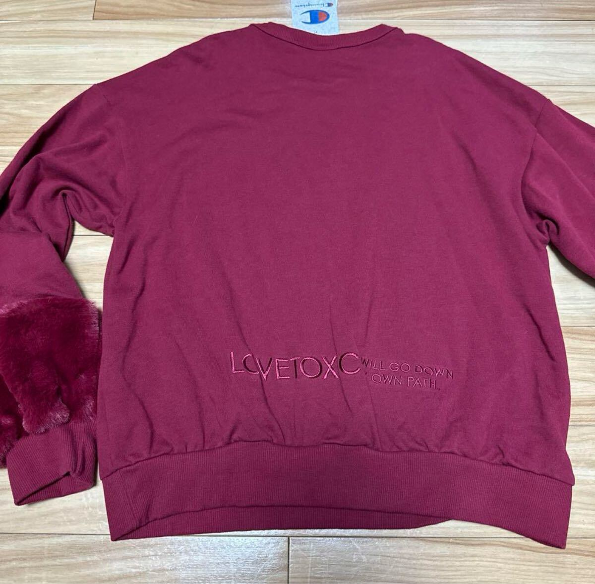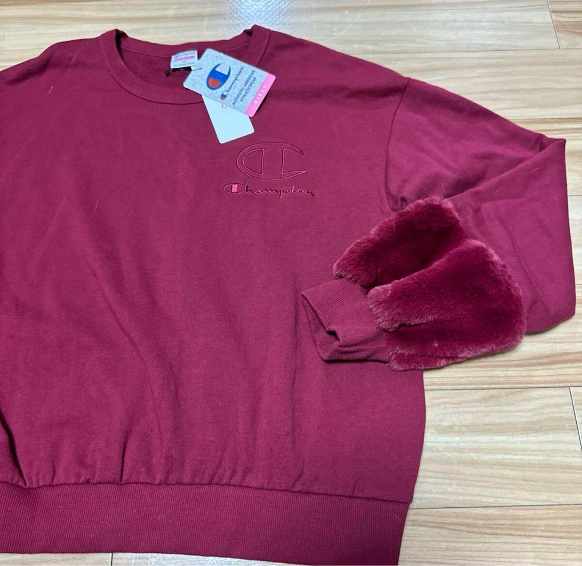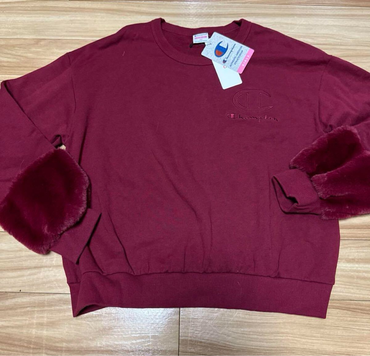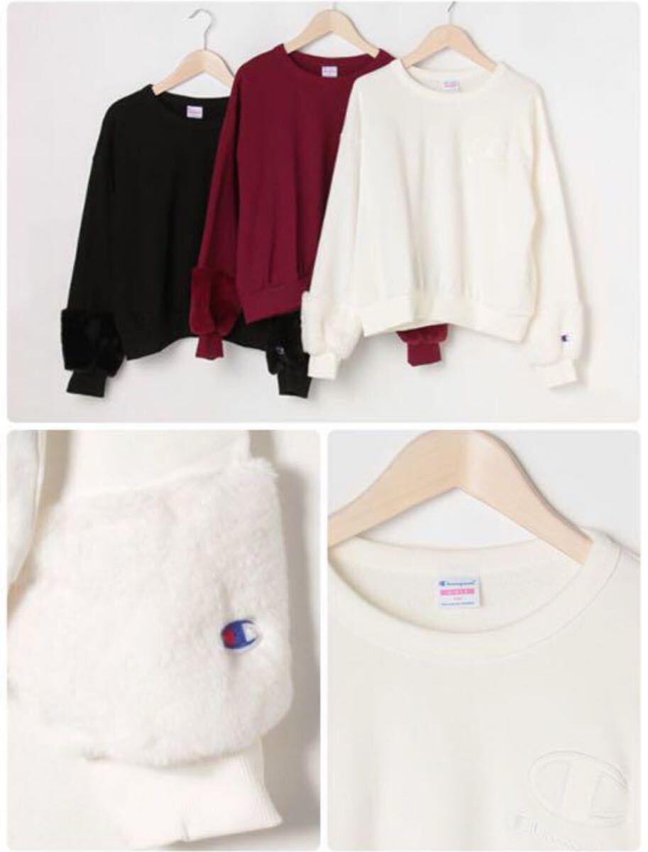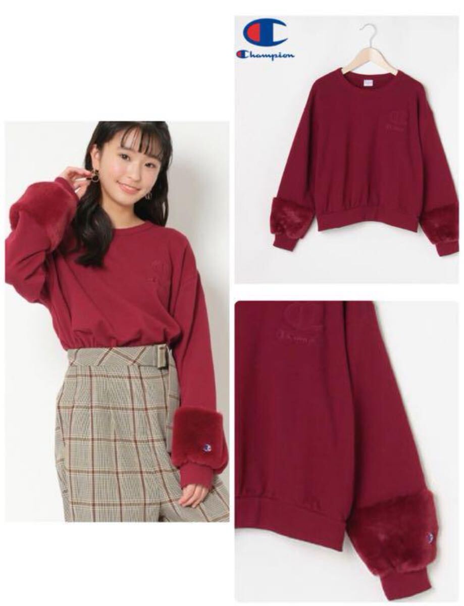 手元の仕草が愛らしく決まる袖にフェイクファーをあしらったChampionとのコラボ裏毛トレーナーです。