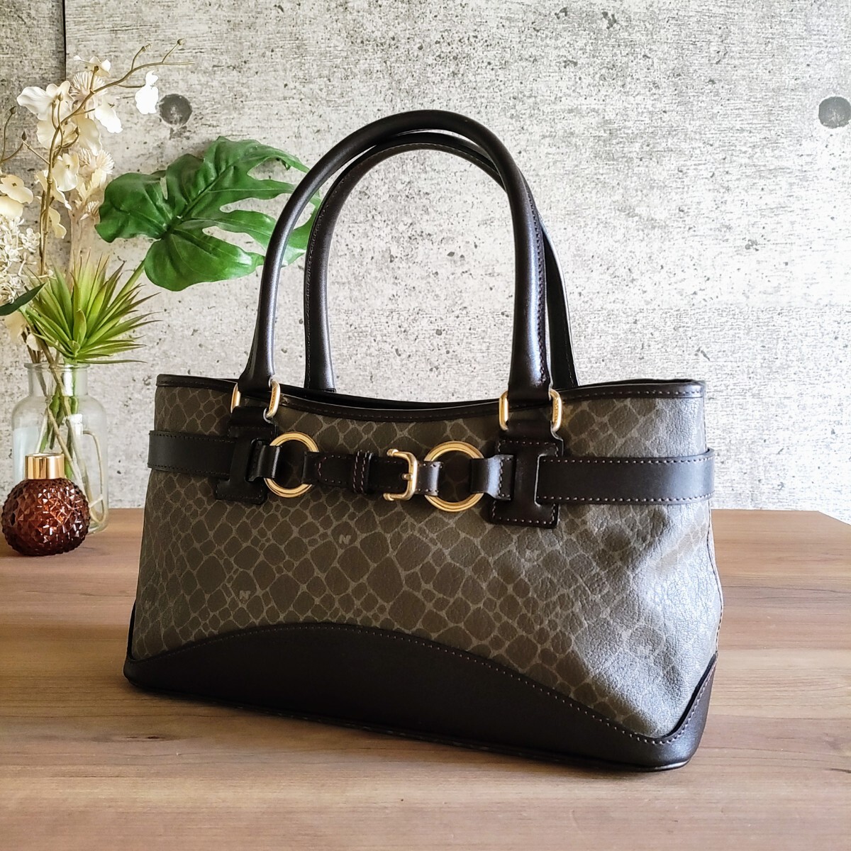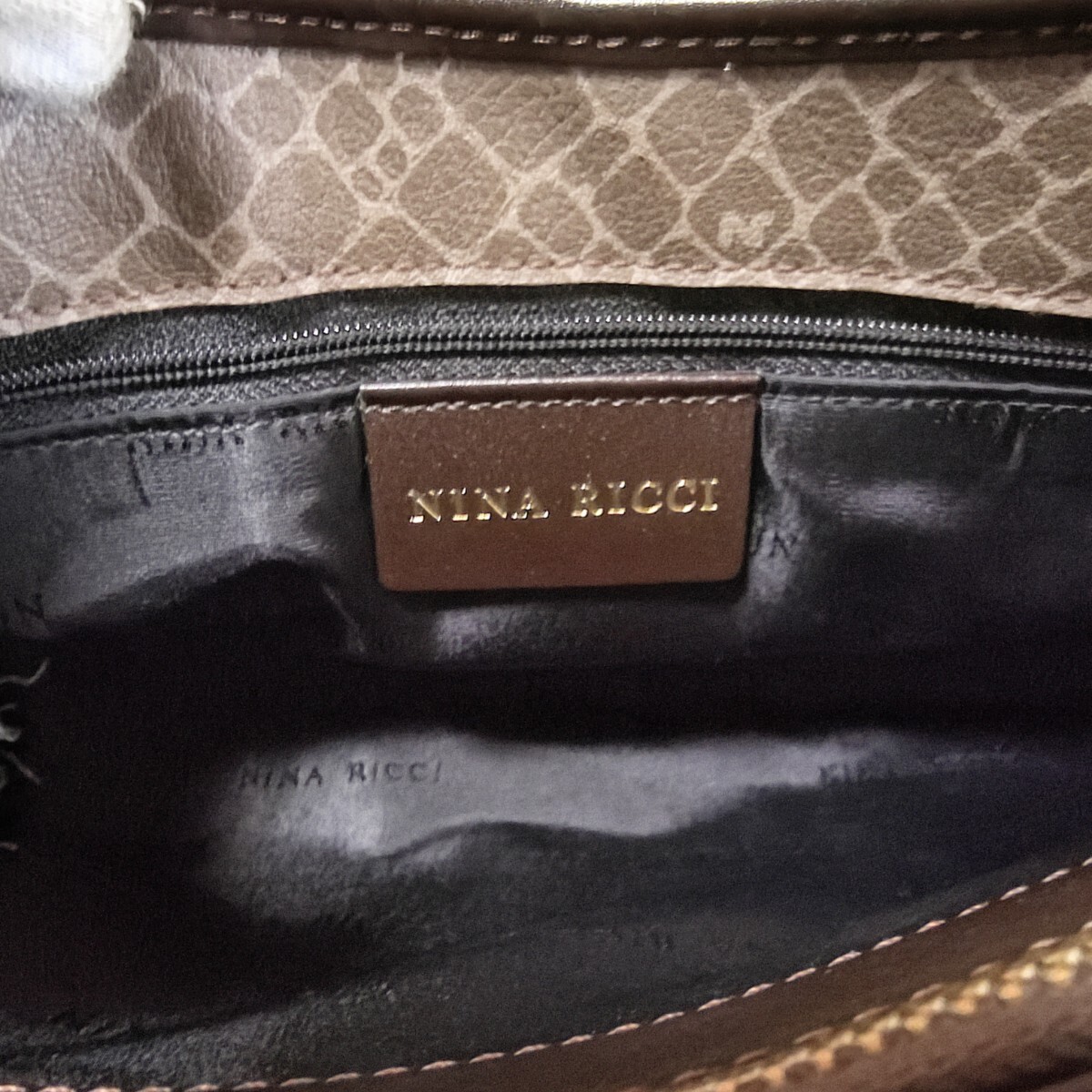 【商品】 NINA RICCI ニナリッチ ヴィンテージ レザー ジラフ 柄 手提げ ハンドバッグ 大容量 鞄 オールド クラシック レトロ アンティーク VINTAGE 90s フランス製