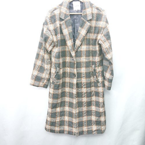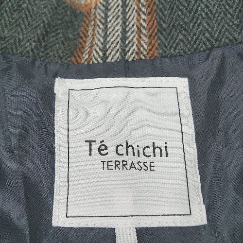 ◇ ⊇ Te chichi TERRASSE テチチ テラス チェック柄 長袖 ステンカラーコート サイズF オレンジ グレー系 レディース E