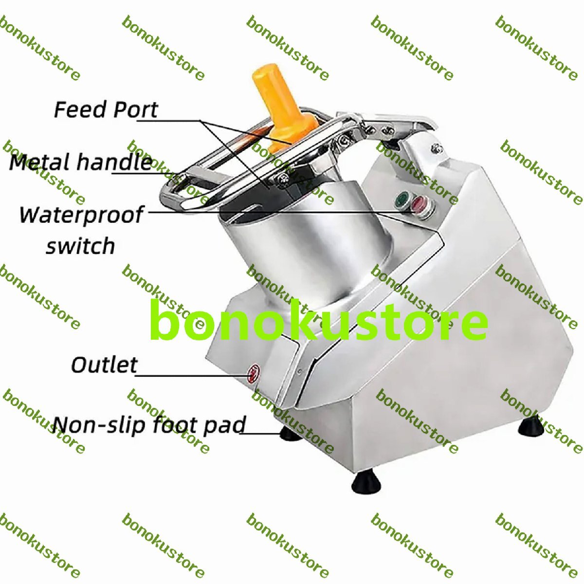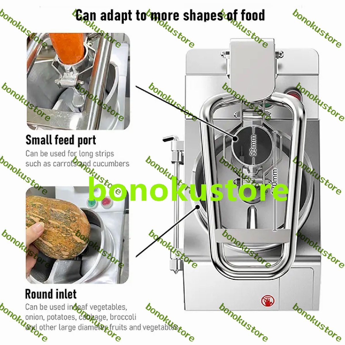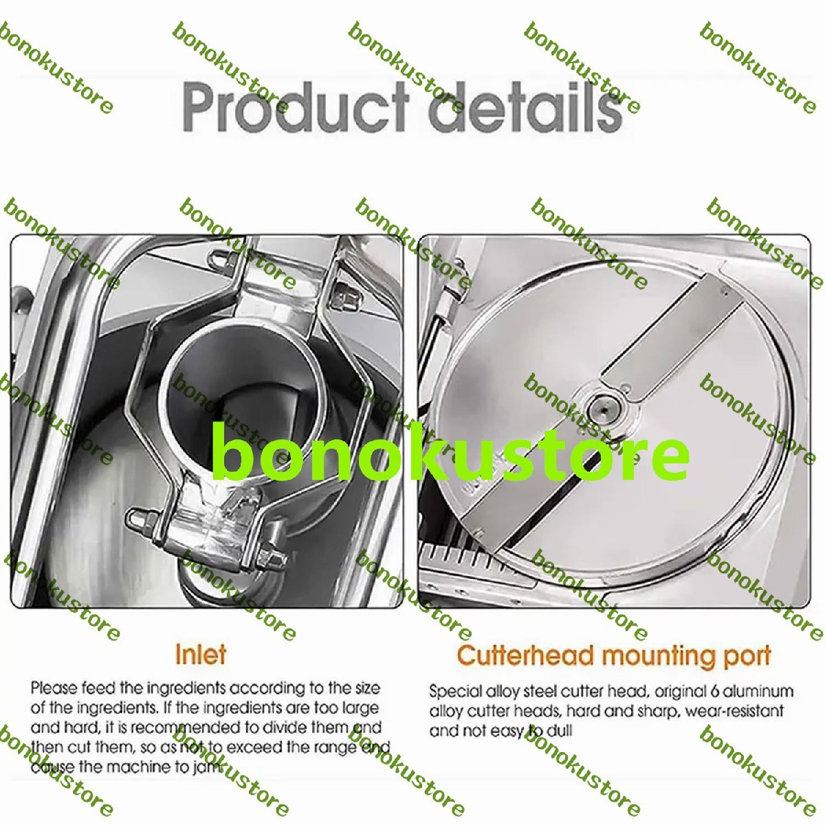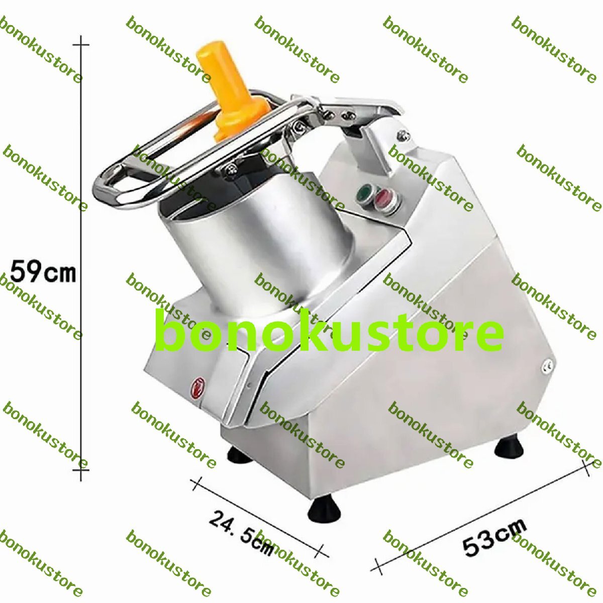 名前: 野菜切断機 電力: 550W 正味重量: 24.2kg 総重量:27.2kg 速度: 300 rpm 本体サイズ:長さ590×幅245×高さ530mm 梱包サイズ:長さ650×幅315×高さ535mm 刃構成:6枚 家族、レストラン、ホテル、スーパーマーケット、肉屋などの場所に適しています。