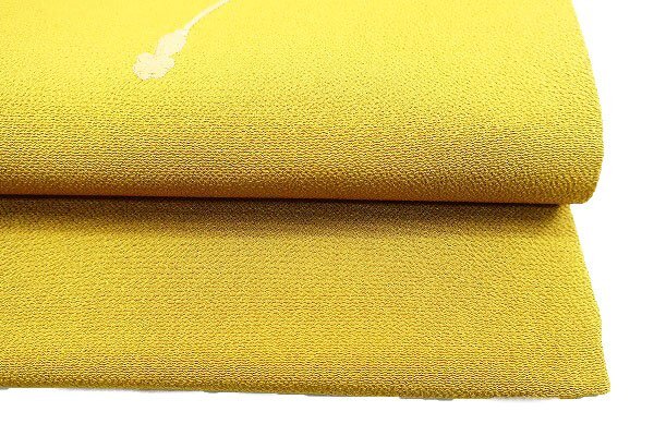 【着物フィ】未使用品 名古屋帯 開き名古屋帯 くすみからし色 ちりめん地 本の花 長さ3m69cm お洒落 普段着 カジュアル 正絹 m-6747 |