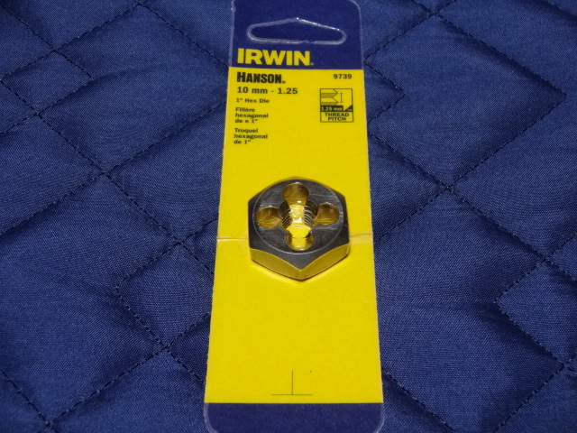 ◎IRWIN(アーウィン)      六角ダイス    【 9739 】     M10-1.25      高炭素鋼      メトリック       10MM-1.25           新品  (未使用品)  です。                                                                                                                           ・購入後、使用せず工具箱にて保管していました商品です(未使用品ですが、保管時の多少の擦れ等はご容赦ください)                  ※パッケージに多少ダメージありますので、気になる方は購入をお控え下さい。                                ノークレーム,ノーリターンでお願いします。                                                       持っていると「いざ」という時に活躍します。                         お探しの方はこの機会に是非どうぞ! !