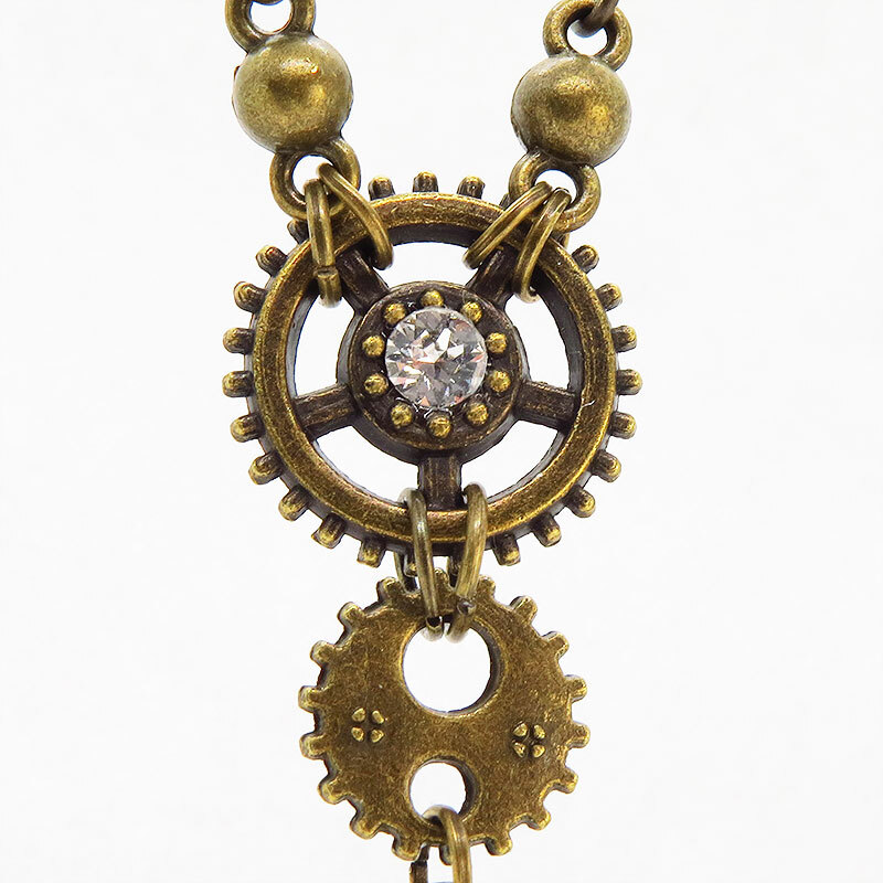 アンティークゴールドで優しく輝く、スチームパンクなデザインのネックレスです
