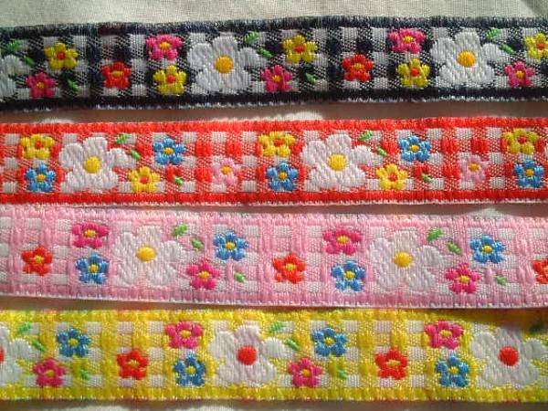 ご覧頂きありがとうございます。 ギンガムチェックに白いお花のチロルリボン。 チロルテープの巾は12mm★ 7色x1m合計7m*薄ピンク*濃ピンク*紺*オレンジ*赤*黄色*水色 お取り置きも承りますので、落札後に1度必ずご連絡くださいませ。 オンラインショップとの同梱も可能です。 | ||